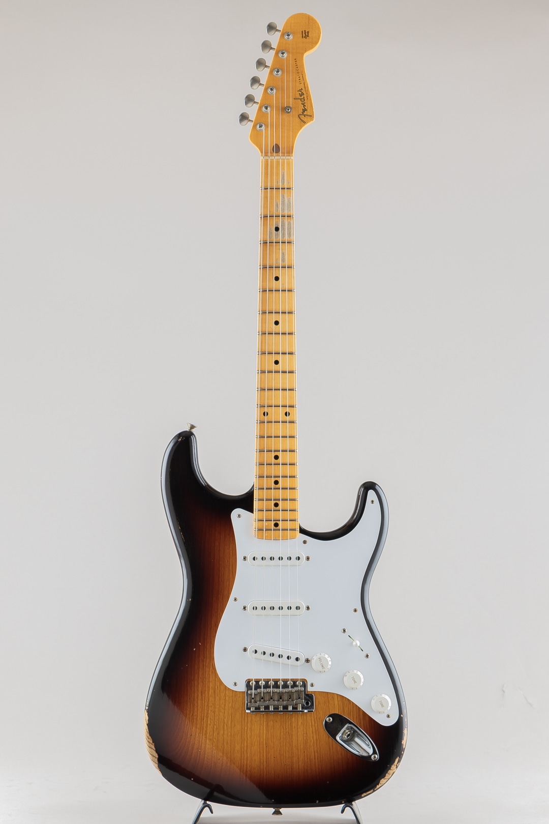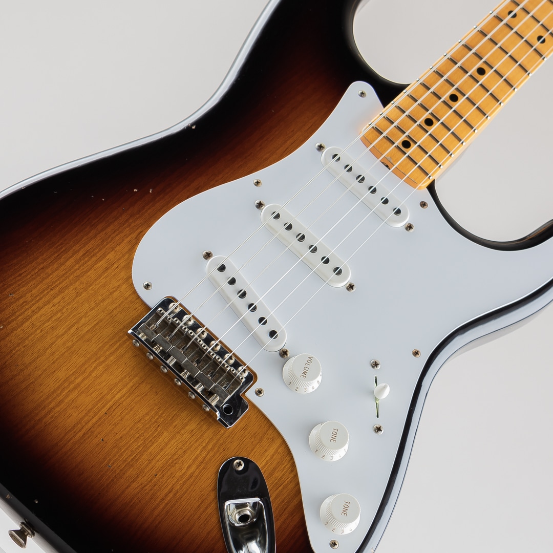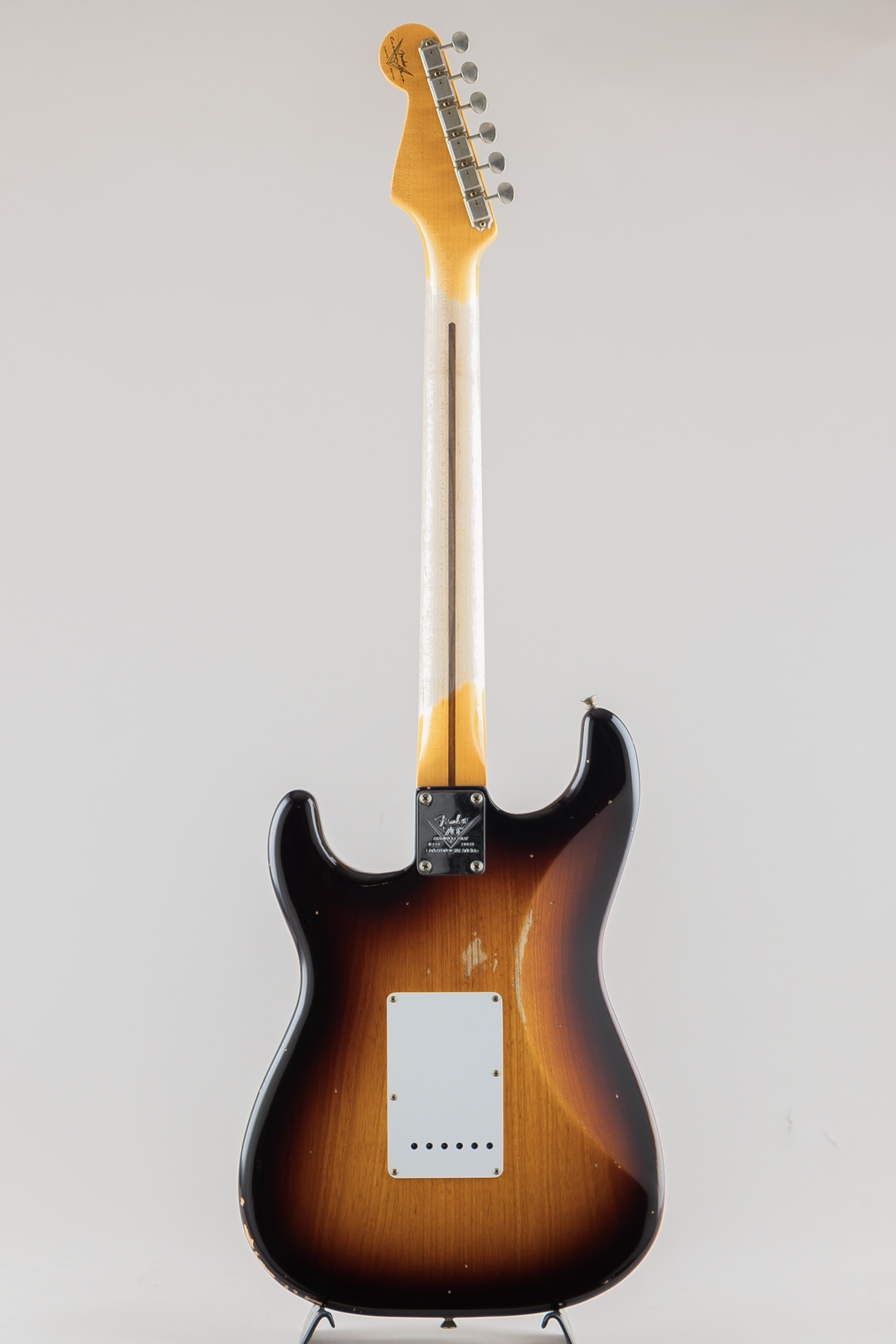 ワンピースクォーターソーンメイプルネックは、1954年7月に製作されたストラトキャスターネックをベースにデザインされており、特別な70th Anniversary Soft "V "シェイプです。21本のミディアムヴィンテージ(47095)フレットと、通常よりも少し幅が狭い1.625インチ幅ボーンナットを採用した7.25~9.5インチ仕様ヴィンテージコンパウンドラジアス指板、クリアでベルのようなハイエンドとクラシックなストラトキャスターのヴォイシングを提供する3基のカスタムショップ製Hand-Wound '54 Stratピックアップ、ワックスペーパーキャッパシターと5ウェイスイッチングを採用したVintage '54 Stratワイヤリングを備えています。