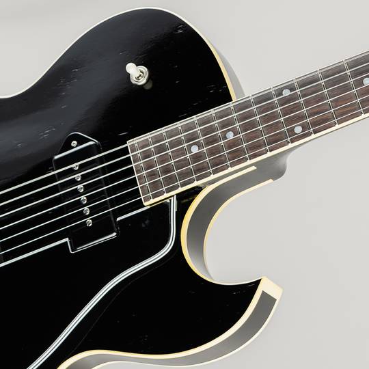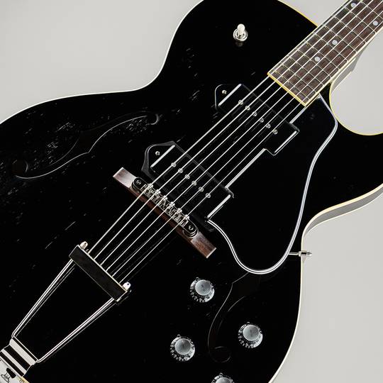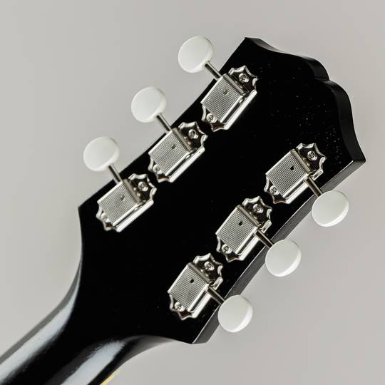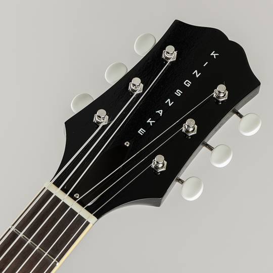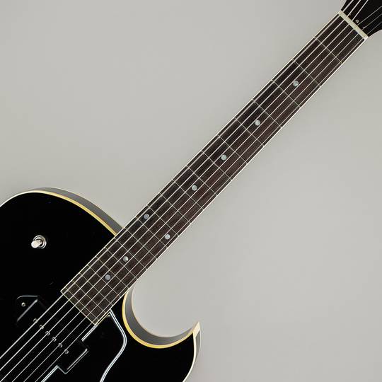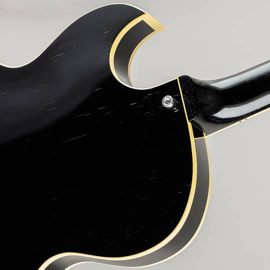 木地を感じ取れるほどの極薄ニトロセルロースラッカー塗装や独自構造の “Detroit One Block” と名付けられたブリッジの裏側に当たる位置に幅80mm/長さ70mm/厚さ15mmのスプルース材を配する事により、通常のフルアコでは得る事の出来ない独特なサスティーンと良い意味でのコンプ感を伴うサウンドの腰の強さを持ち、歪んだサウンドにも十分に対応出来る1本となっており、材構成はマホガニーネック/ローズウッド指板、ボディ部トップ& バック材は、メイプル(約1mm)/ スプルース(約3mm)/ メイプル(約1mm)の3プライ構造でトータル約5mm厚で仕上げられており、音の立ち上がりの早さやライブ時に音量を上げた際にキレとうねりを出す為に薄く設計されております。