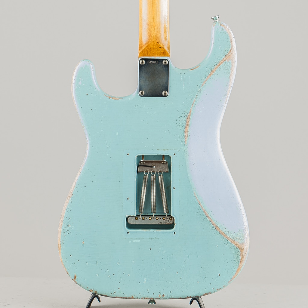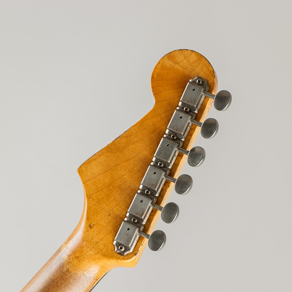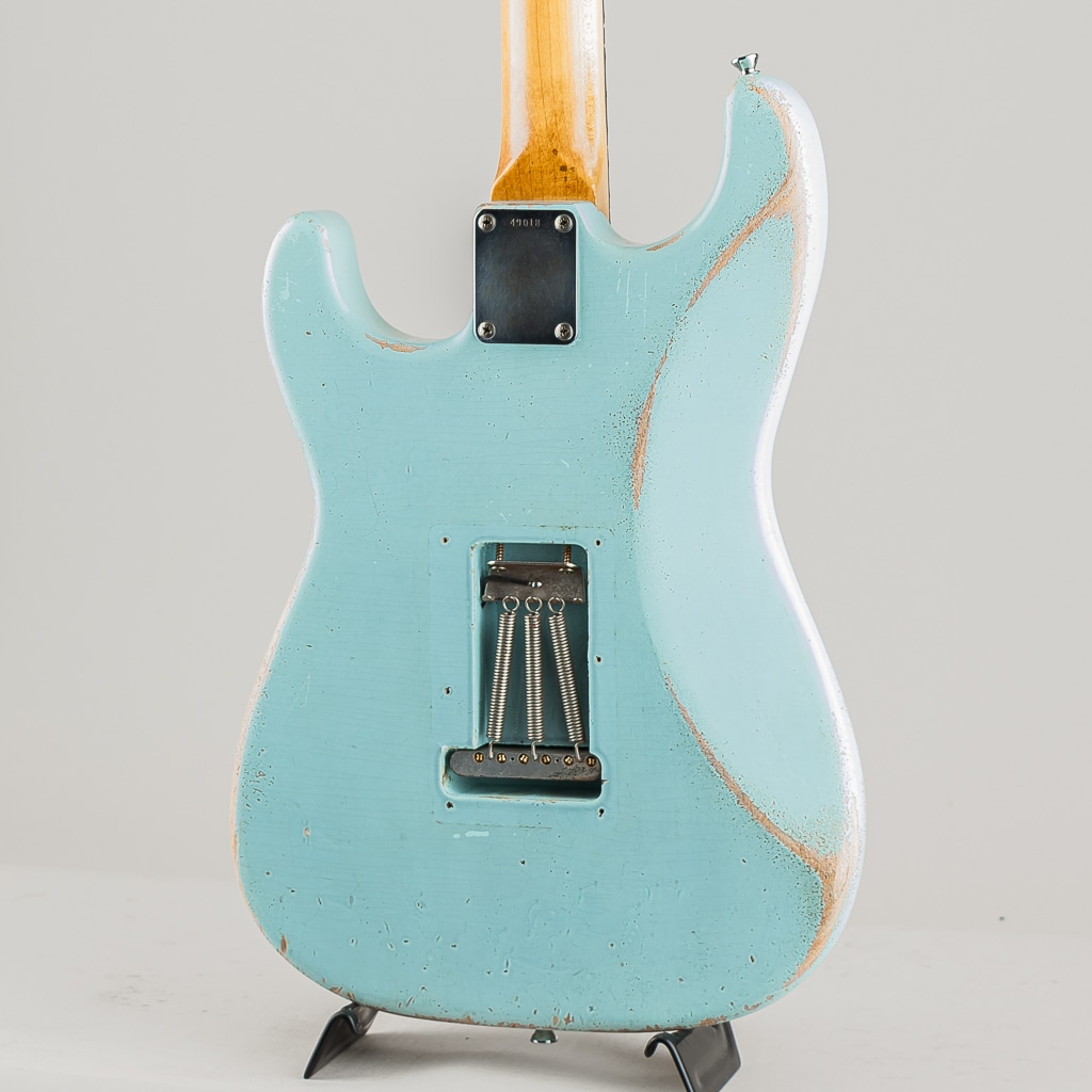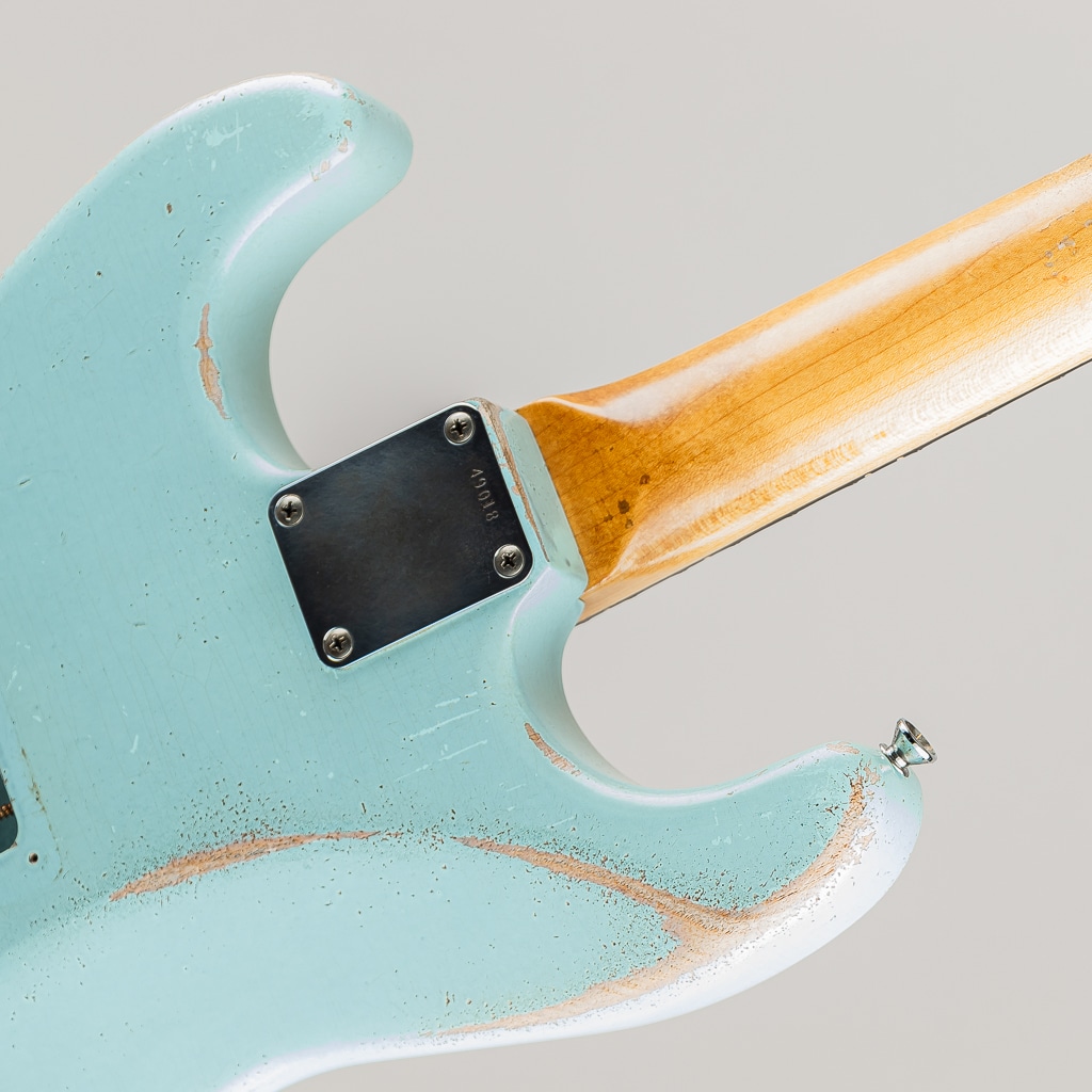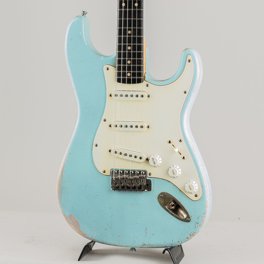 "THE BLACKGUARD BOOK"の著書でもあるNacho Banos氏による、究極のBlackguard Repricaブランド"Nacho Guitars”。年間の製作本数は非常に少なく日本国内への入荷数も限られており、カタログモデルといった概念は無く1本1本個性を宿したギターをワンオフで製作するようなスタイルが貫かれています。同じ年代・特徴のモデルであっても、それぞれが個性を持った外観・弾き心地・そしてサウンドが表現されております。本器は、”Early 60s Contour Body #49018 Heavy Aging Sonic Blue Medium C Neck”。オリジナル・ブラックガードを知り尽くしたNacho氏の経験値を元に製作される、圧巻の完成度を誇る 60’sレプリカの1本。スラブローズウッド指板、メイプルネック、アッシュボディのウッドスペック。オールドを知り尽くしたNacho氏ならではの雰囲気あるヘビーエイジド加工が施されたソニックブルーカラー。ミディアムCシェイプに仕上げられたネックは細すぎず薄すぎない握り心地の良いネックシェイプです。本物さながらの経年したハードウェア、褪色感を再現したエイジングカラーの3plyミントグリーンPGは、その作り込みを愛でるだけでも楽しめる仕上がり。9.5”ラジアス指板、ミディアムフレット、Early60’sスタイルトレモロブリッジ、スチールサドル、Early 60’sスタイルピックアップ。ピックアップセレクターワイヤリングは5wayで、ネックPUトーン、センターPU&ブリッジPUトーンです。ファットで野太いレスポンス、倍音感にあふれる甘いトーンから、ベルトーンの美しいハーフトーンまで、このスタイルに求められるサウンドを遺憾なく発揮してくれます。ストイックにブラックガードを愛したNacho氏ながら、指板ラジアスやピックアップワイヤリングなどはモダンで使いやすいセットをセレクトしており、より実戦向きで使えるビンテージレプリカに仕上げられています。オリジナルビンテージと見まごうほどの雰囲気と仕上がりの話題と人気を集めるスペイン発”Nacho Guitars”。オリジナルハードケース、ブリッジカバー、オリジナル・レザーバック、スペックシート、当機の画像データが入ったUSBとUSB用の木箱、レザーストラップ付属
