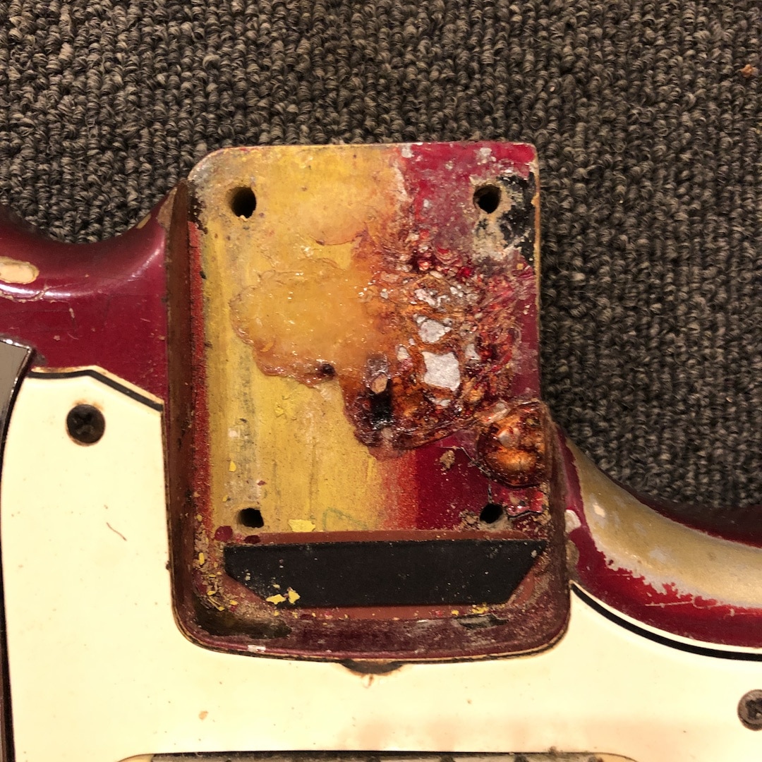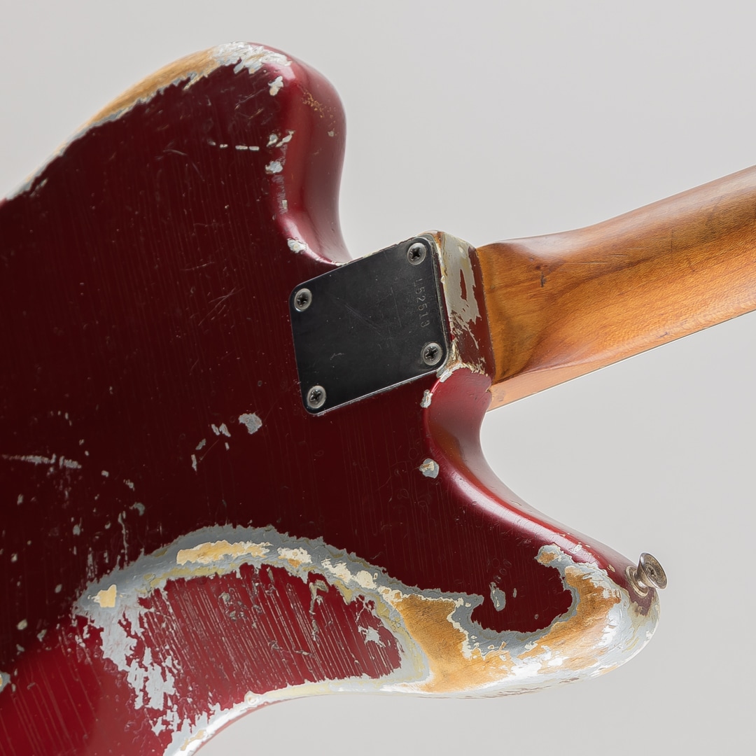 マッチングヘッド仕様の “Candy Apple Red” は経年/使用に伴い焼けや下地のメタリックカラーが露出し雰囲気抜群のルックスに仕上がっており、サウンド面に於いては、しっかりと弾き込まれたことによるファットで濃密なヴィンテージサウンドが心地よく響いております。