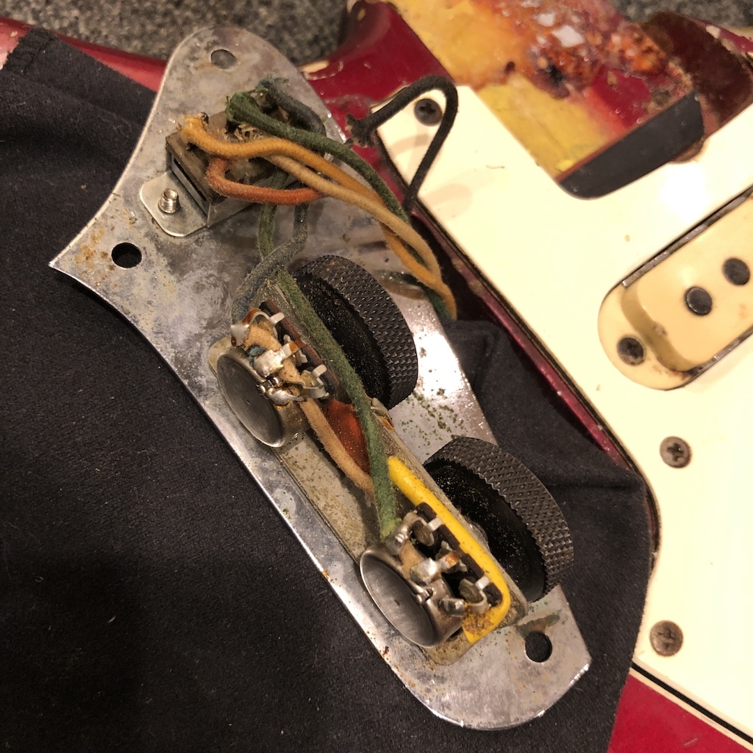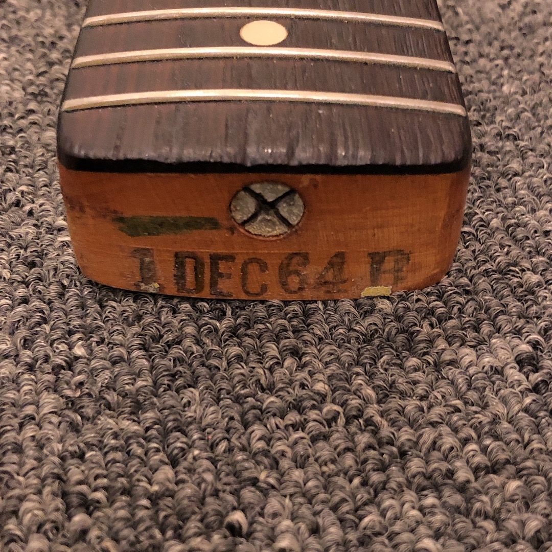今回入庫いたしました個体は、1964年製の1本で、アルダーボディ、メイプルネック/ラウンド貼りハカランダ指板のウッドスペックに、スタッガードポールピース仕様のピックアップを装備。