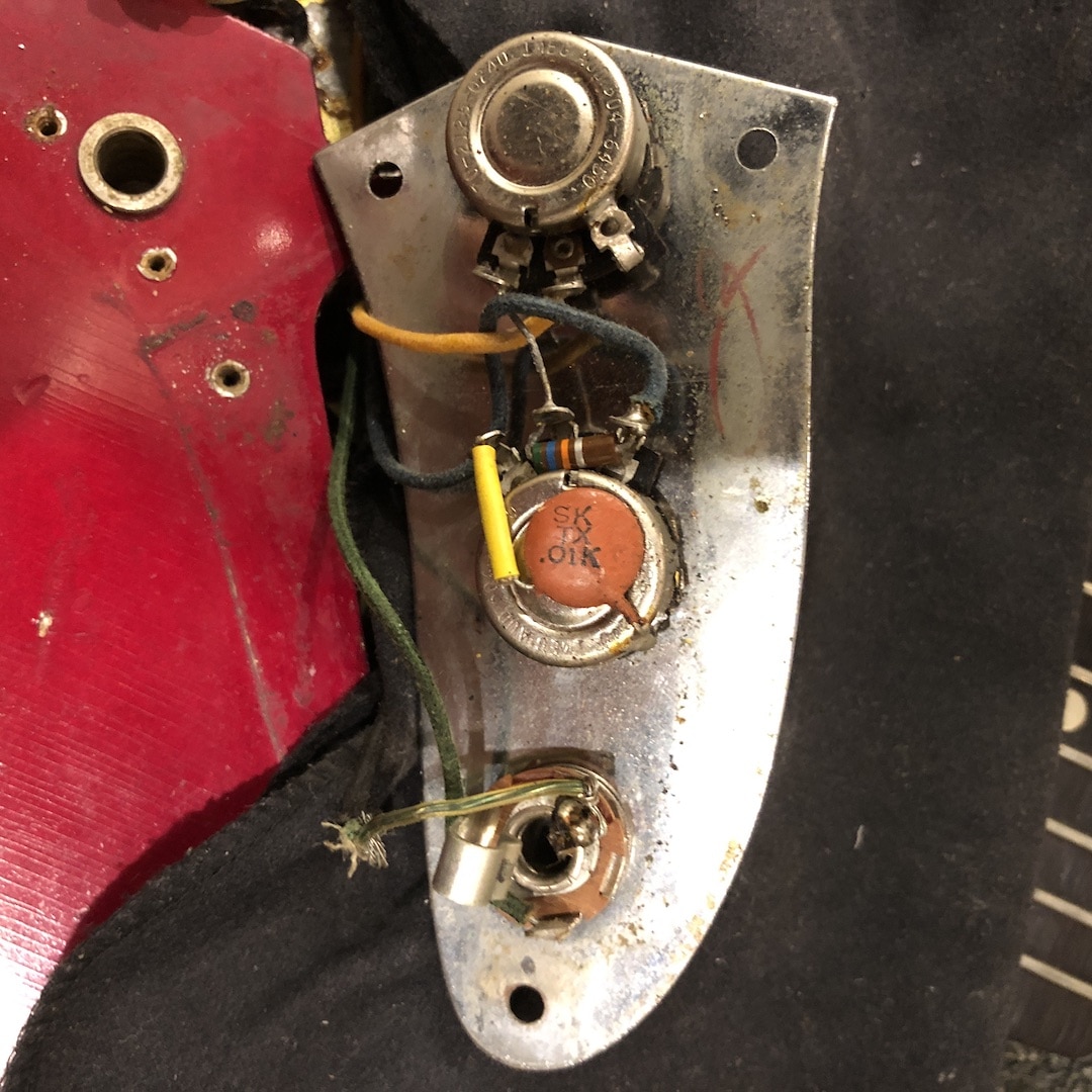 状態といたしましては、アース線の延長、ヴォリュームノブ、ストリングガイドビス、ナットの交換等でオリジナル度の高い1本でございます。