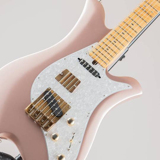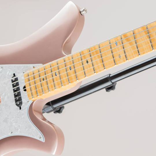 ウッドマテリアルは上品かつ洗練されたイメージの "Rose Gold" カラーを纏うアルダーボディ、美しい杢の出た1ピースフィギュアドメイプルを採用し"Nitrocellulose Aged Tone" と名付けられた塗面に細かなチェッキングが浮かぶ温もりのある塗装にて仕上げられております。
