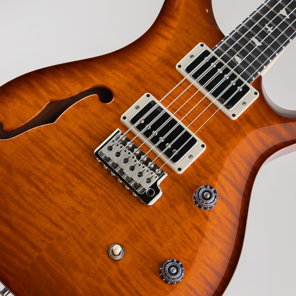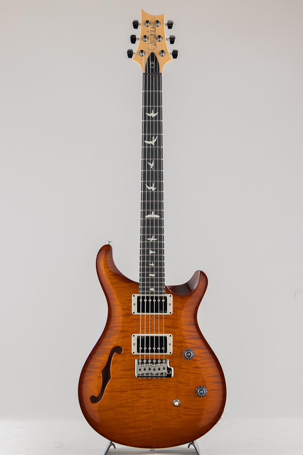ボルト・オン・ギターのスナップやサステインと、セミ・ホロウ・ボディの空気感あるレゾナンスを兼ね備えたCE 24 Semi-Hollowは、PRSのボルトオン・ラインナップに加わったユニークなモデルです。ボディはマホガニー・バックとメイプル・トップの伝統的な組み合わせで当モデルはメイプルネック/エボニー指板のボルトオンスタイル。