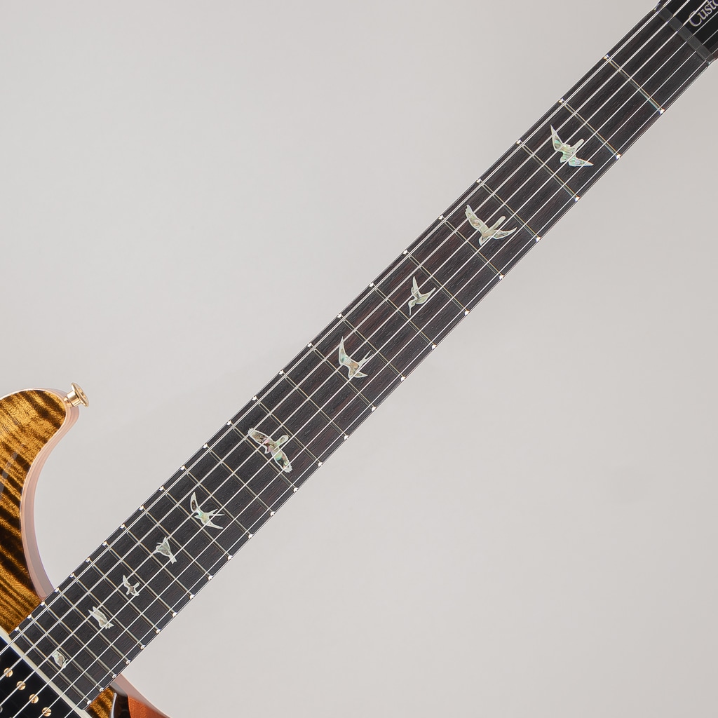 その独自のシェイプ、搭載されるPRS Tremoloブリッジ、ロッキングチューナー、そして見る者を魅了する美しいカーブを持つメイプルトップ等、ギタリストの欲求を満たすサウンドポテンシャル、安定性、そして美しさを兼ね備えたまさにPRSの中核を担うモデル。
