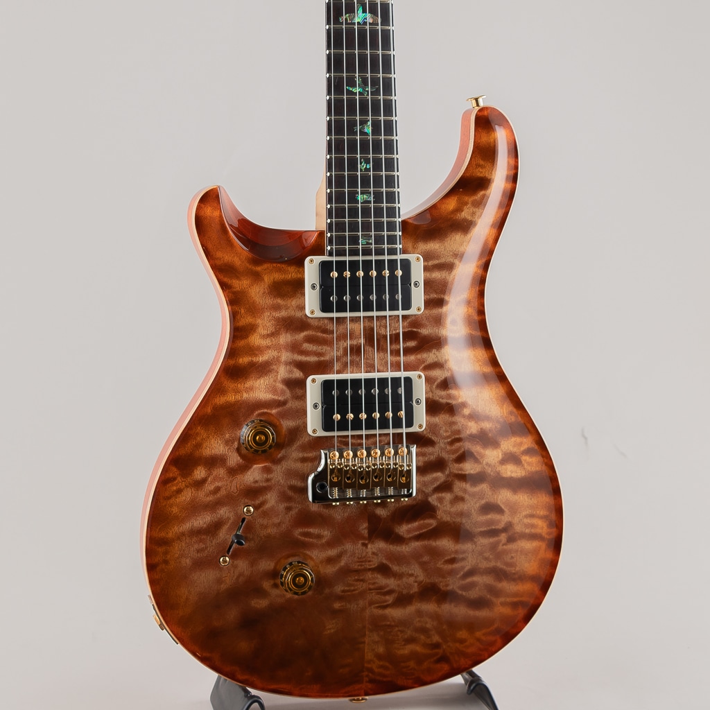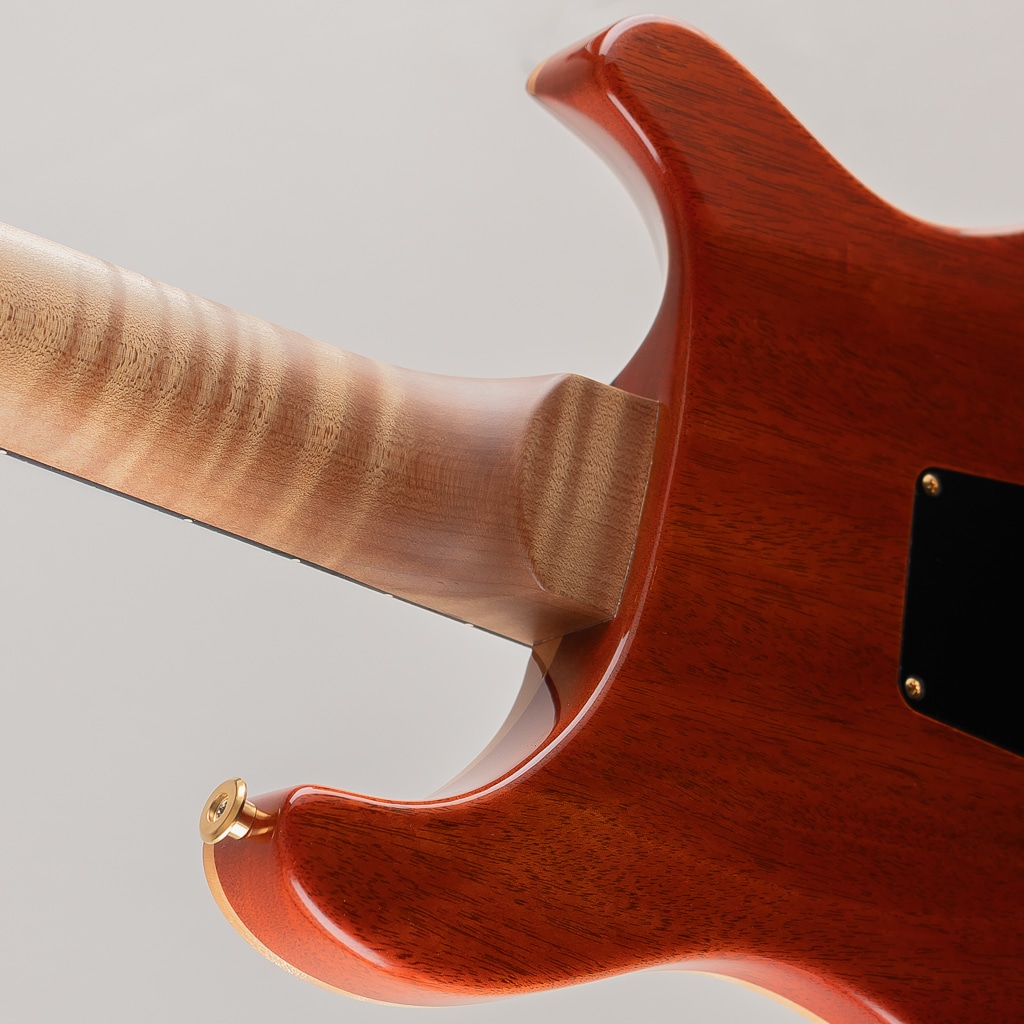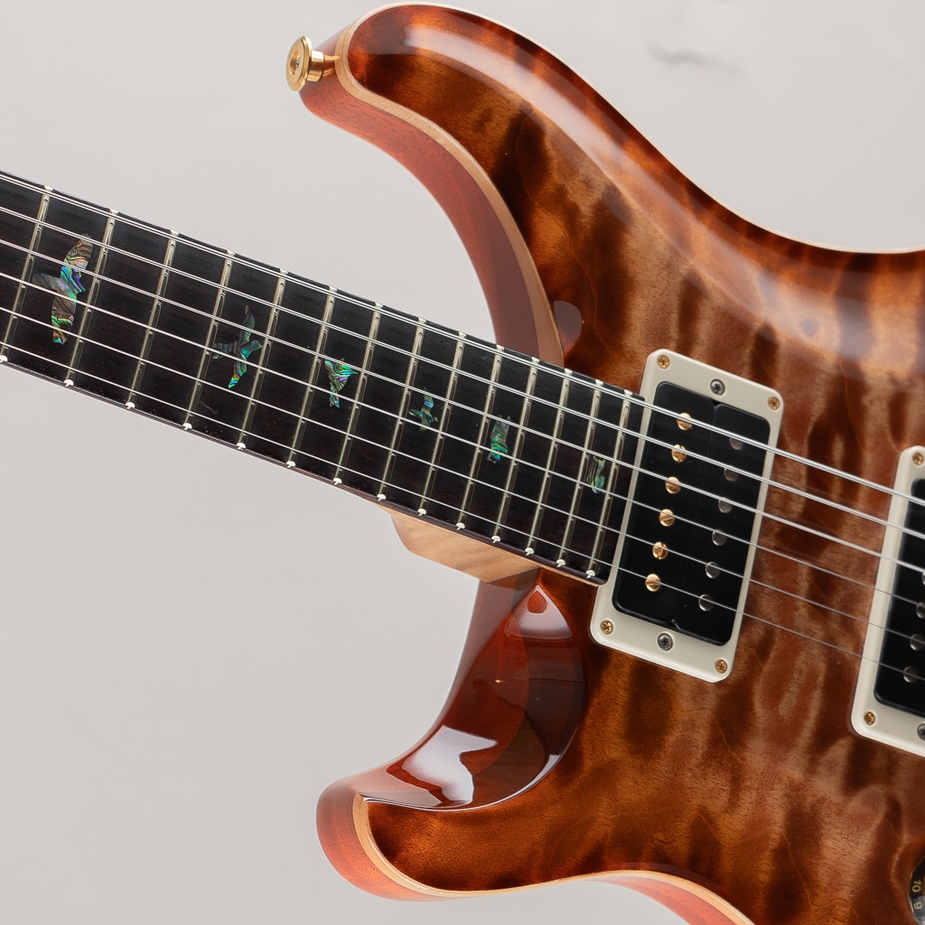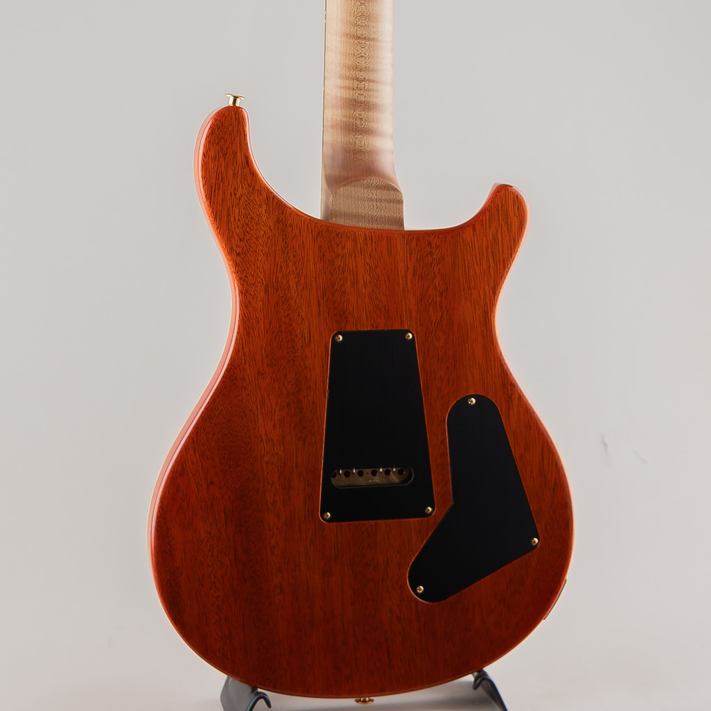 今回入荷のモデルはPRS社のフラッグシップモデル "Custom24" をベースに "Wood Library" ならではの独自のスペックやウッドマテリアルを用いたレフティ仕様の特別な1本。10Topグレードの "Quilt Maple" をトップ材に配しバック材は各カラーに合わせてカラーリングが施された "Mahogany" を採用。
