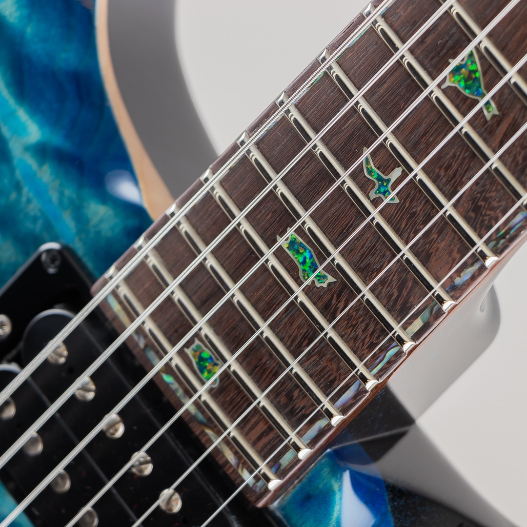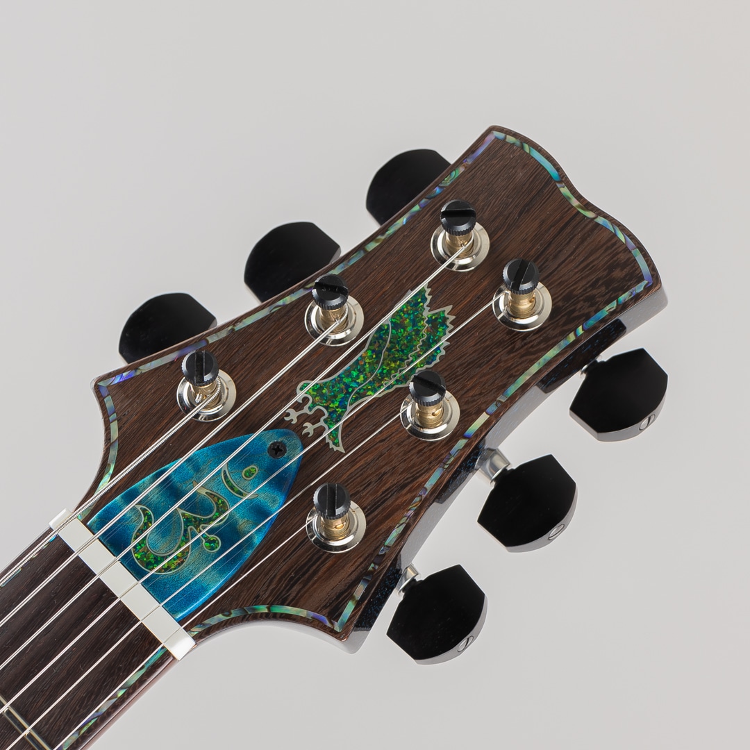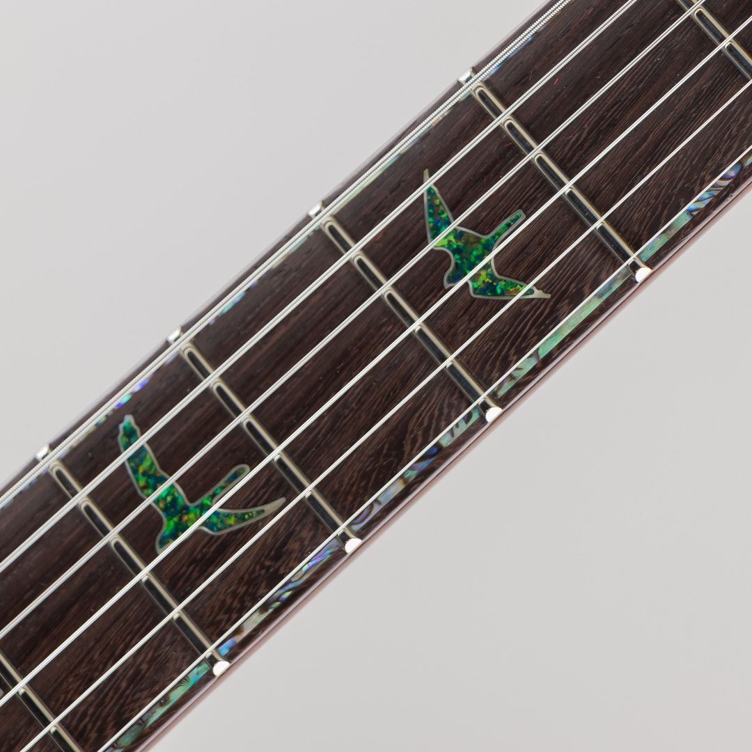 PRS最高峰プライベートストックチームが使用する最上級の材がストックされております ""Private Stock Vault"" にて、ハンドピックした極上材を用い、他のハイエンドブランドでもなかなかお目にかかれない美しいキルトメイプルを惜しみなくボディトップ材に使用し、バック材/ネック材は道管が青く染められたマホガニー、指板/付き板にはハンドセレクトした目の詰まったマダガスカルローズウッドをセレクトしております。