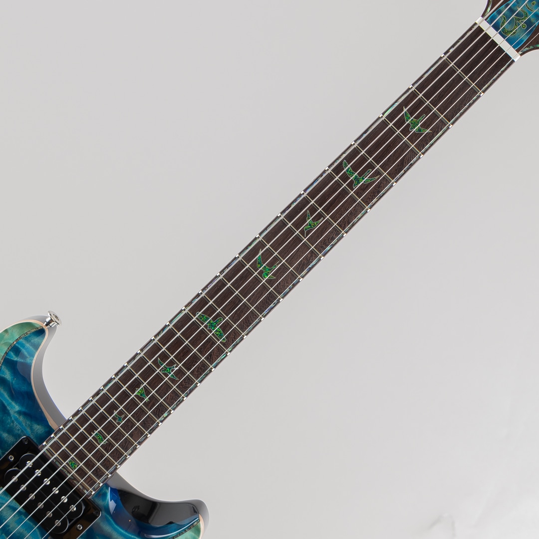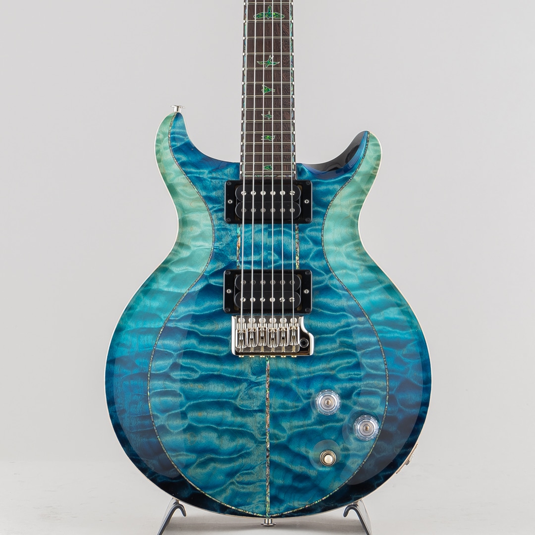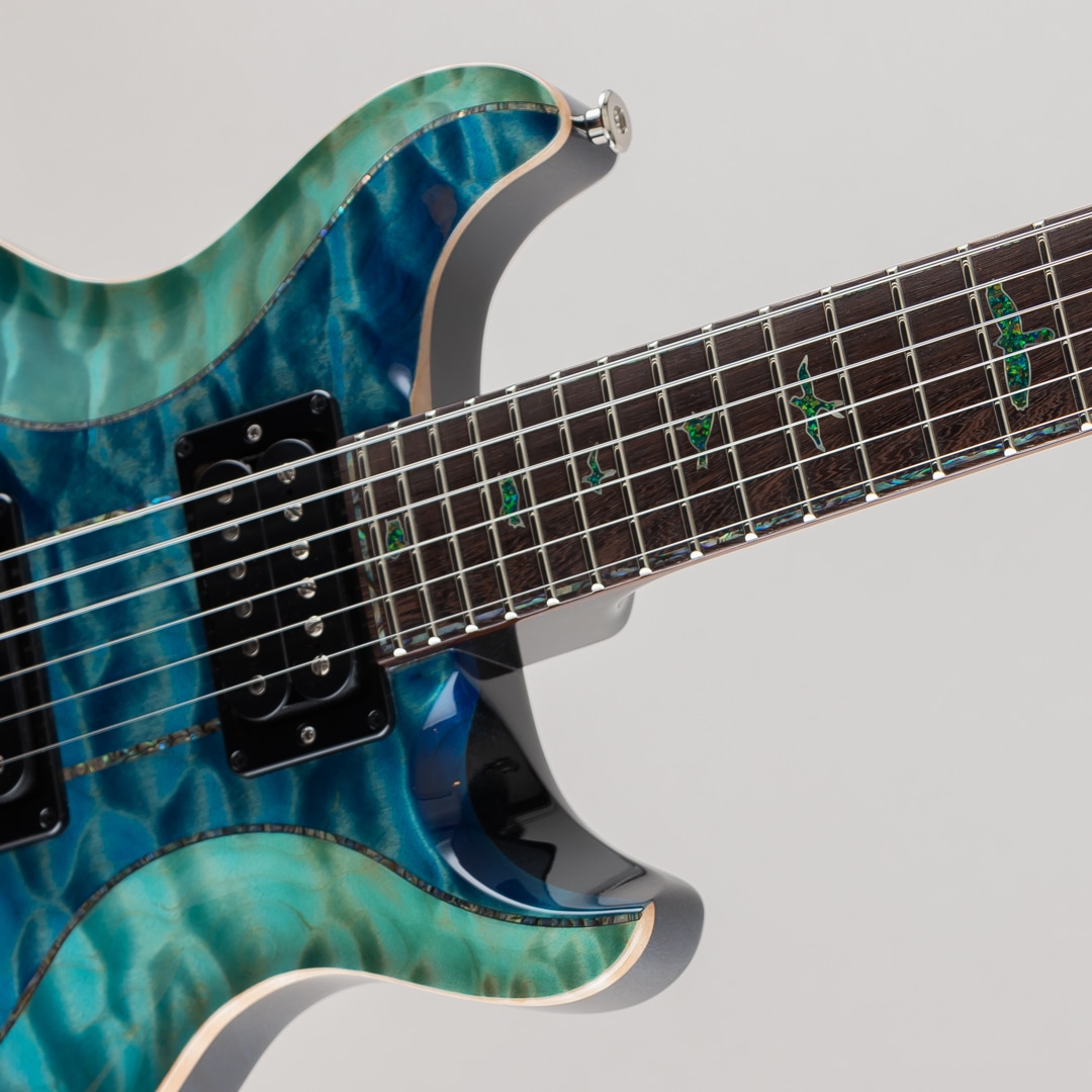 PRS最高峰プライベートストックチームが使用する最上級の材がストックされております ""Private Stock Vault"" にて、ハンドピックした極上材を用い、他のハイエンドブランドでもなかなかお目にかかれない美しいキルトメイプルを惜しみなくボディトップ材に使用し、バック材/ネック材は道管が青く染められたマホガニー、指板/付き板にはハンドセレクトした目の詰まったマダガスカルローズウッドをセレクトしております。