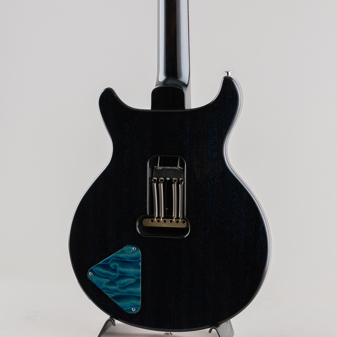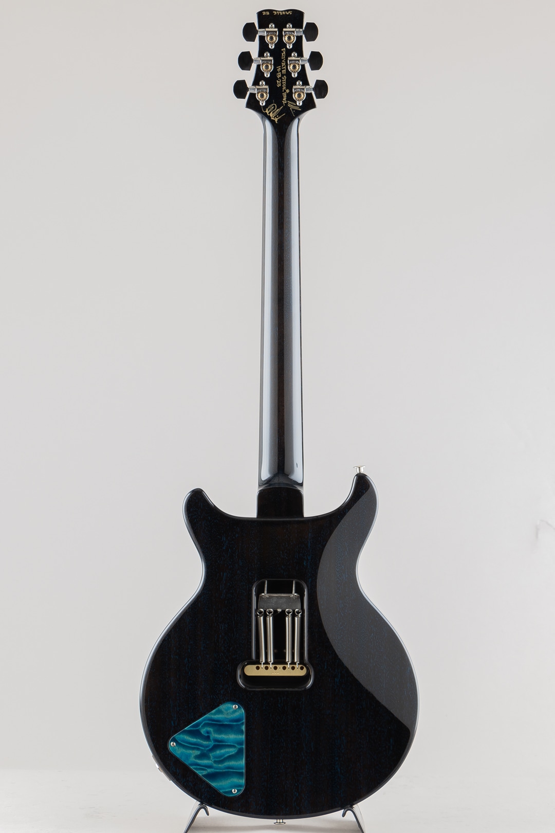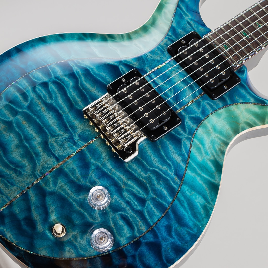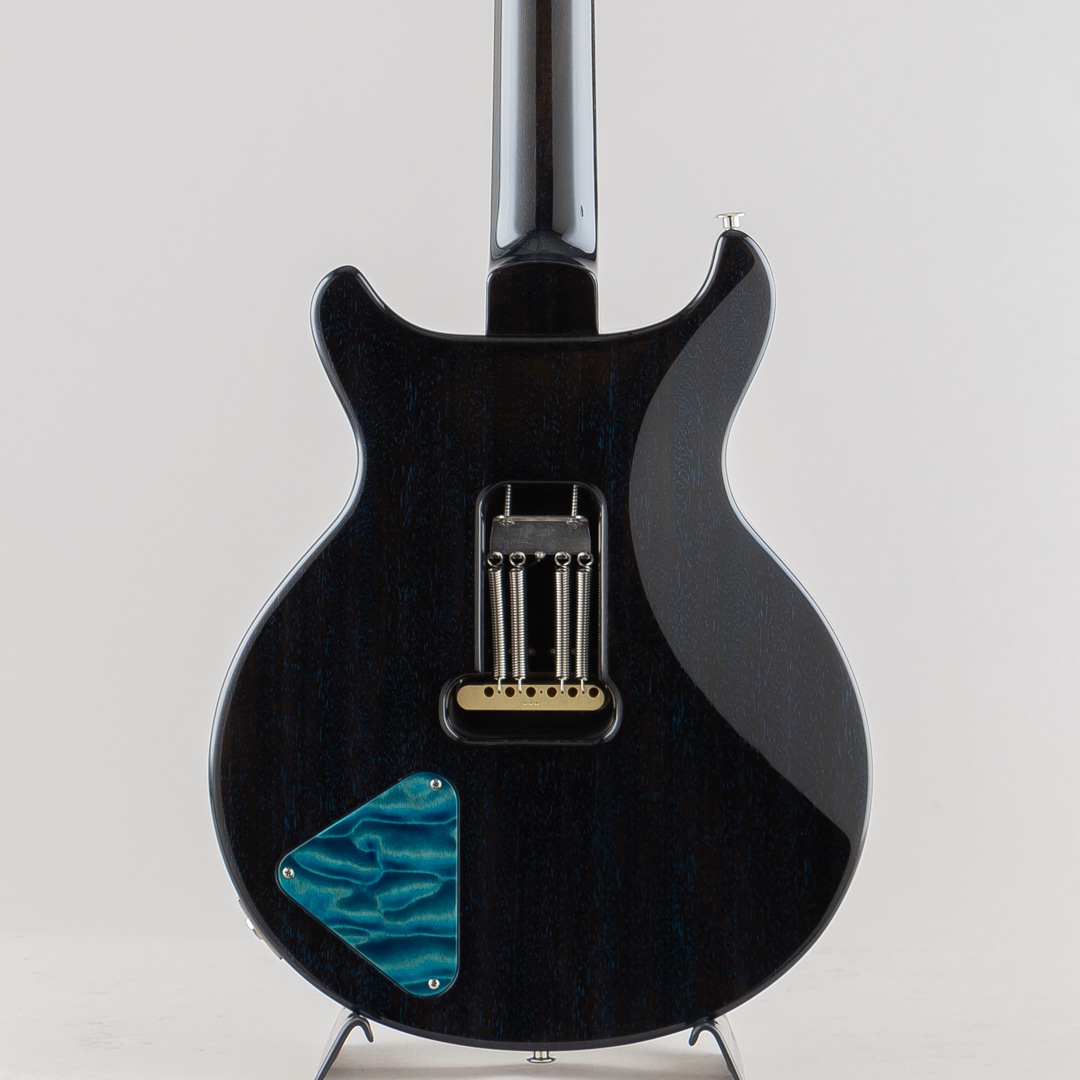 サンタナモデルの真骨頂でもあるボディ・パーフリングに、カーブトップボディの曲線に沿って描かれたカスタムパーフリングを境に、異なるコンセプトのブルーを外側のみリバースでフェイドフィニッシュしたオーダー品となります。