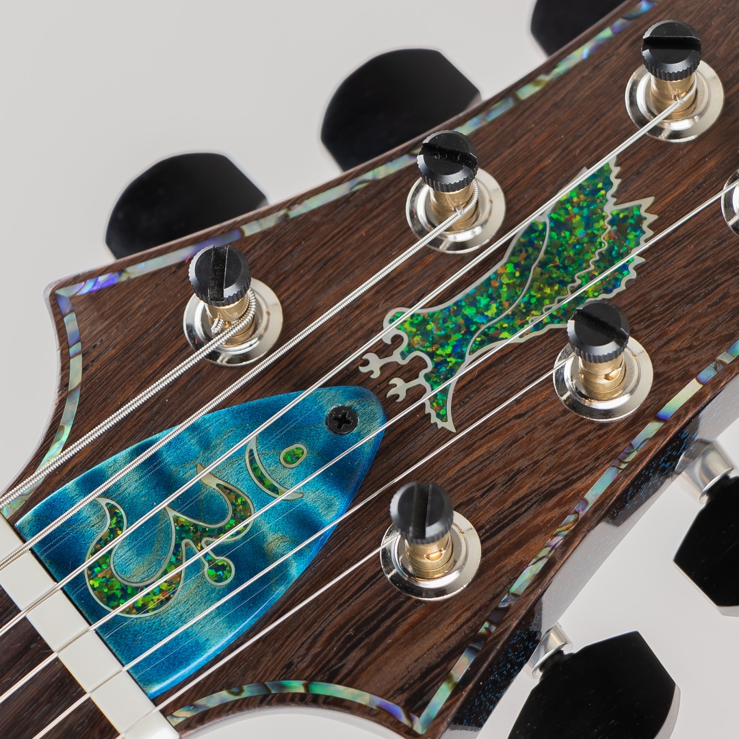 Headstock veneer inlays: Synthetic Black Opal PS Eagle with Gold Mother of Pearl outlines with Paua purfling