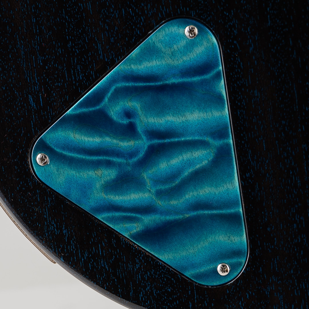 Hardware: Nickel PRS Gen III tremolo bridge with locking saddles, PRS Phase III set-screw locking tuning pegs with Ebony buttons, Quilted Maple backplate stained to match, and a Quilted Maple truss rod cover with Synthetic Black Opal OM inlay