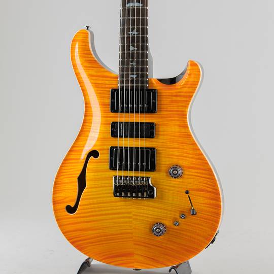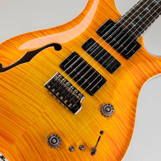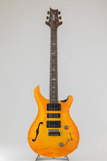 2021年に再登場したSpecial Semi-Hollowの基本スペック(22フレット、25インチスケールネック、シ ングルFホール搭載セミホローボディ、ナローフィールドハムバッカーピックアップ)はそのままに、 Private Stock Vaultから厳選されたHighly-Figured Mapleをトップ材、Black Limbaをバック材とネッ ク材、指板・トラスロッドカバー・ヘッドの突板にはZiricoteをそれぞれ採用。White Mother Of Pearl とPauaを組み合わせたインレイ、Smoked Black ハードウェア、Citrus Glow High-Gloss Nitroフィ ニッシュで仕上げられた今回のSpecial Semi-Hollowは、PRS Private Stockチームが手掛けるLimited Editionの名に相応しい仕上がりとなっています。