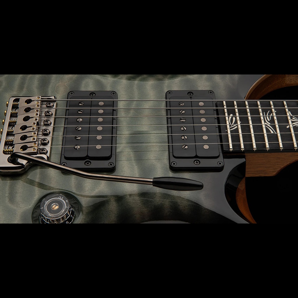 また、クリアで太く煌びやかなサウンドを生み出す85/15ピックアップを搭載し、印象的なTrampas Green Smokeburstフィニッシュが施されています。?