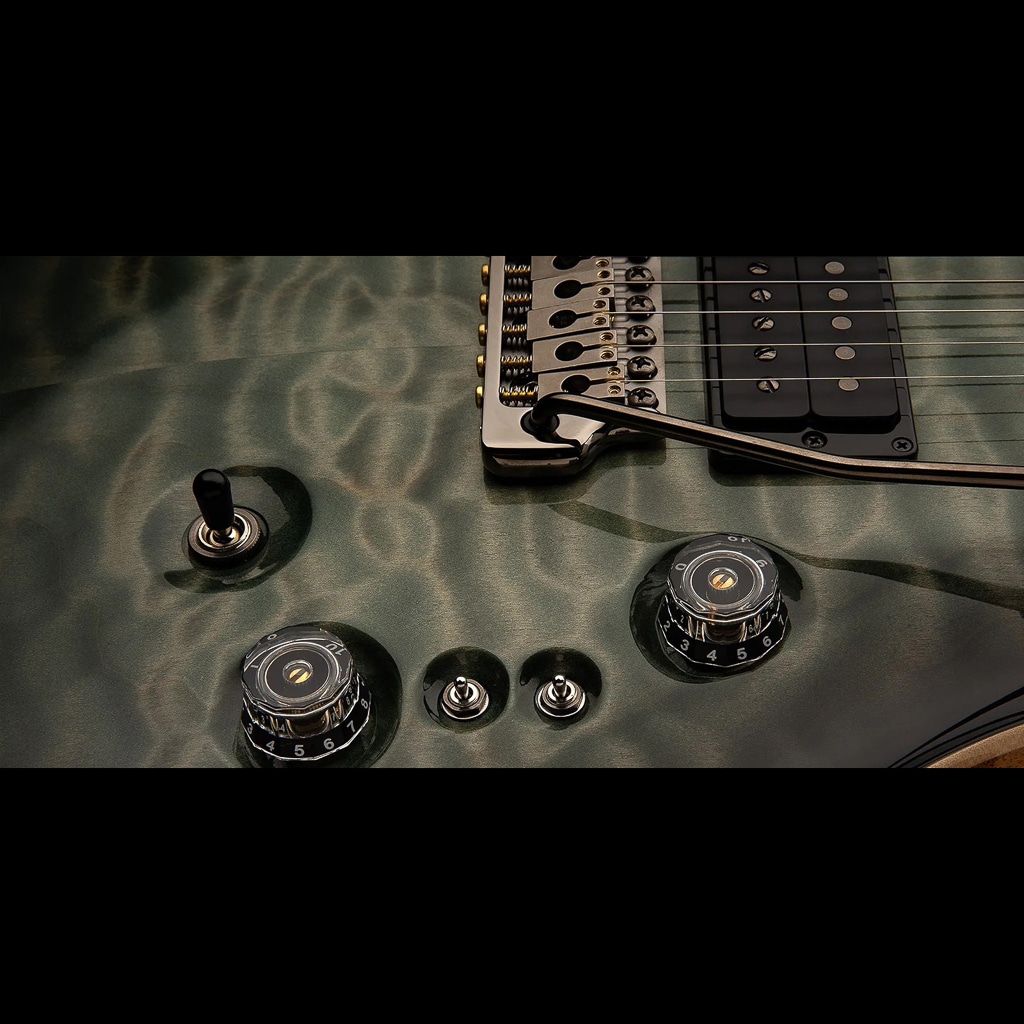 カラー・フィニッシュに関しては、『これからこのギターと共にBAND-MAIDを頑張っていこう』と決意した時に買った最初のPRSのカラーがTrampas Greenだったので、その時の想いを忘れないという意味も込めてTrampas Green Smokeburstにしました。