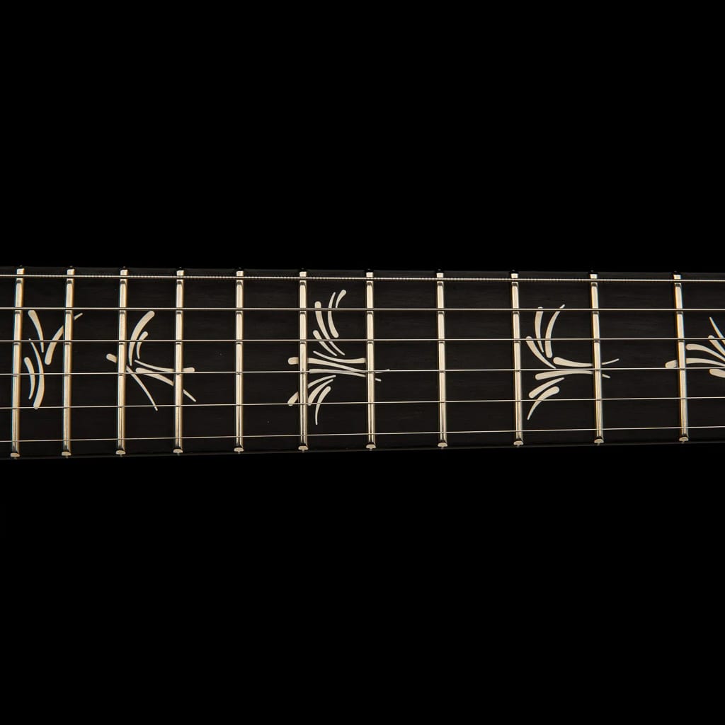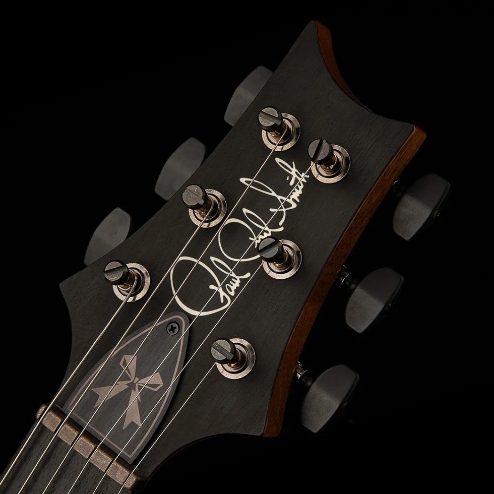 Custom 24-08をベースに、キルトメイプル・トップ、ブラッシュストローク・インレイが施されたエボニー指板、スモーク・ブラック・ハードウェアを採用。トラスロッドカバーにはBAND-MAIDのロゴがデザインされるなど、特別な仕様に仕上げられています。?
