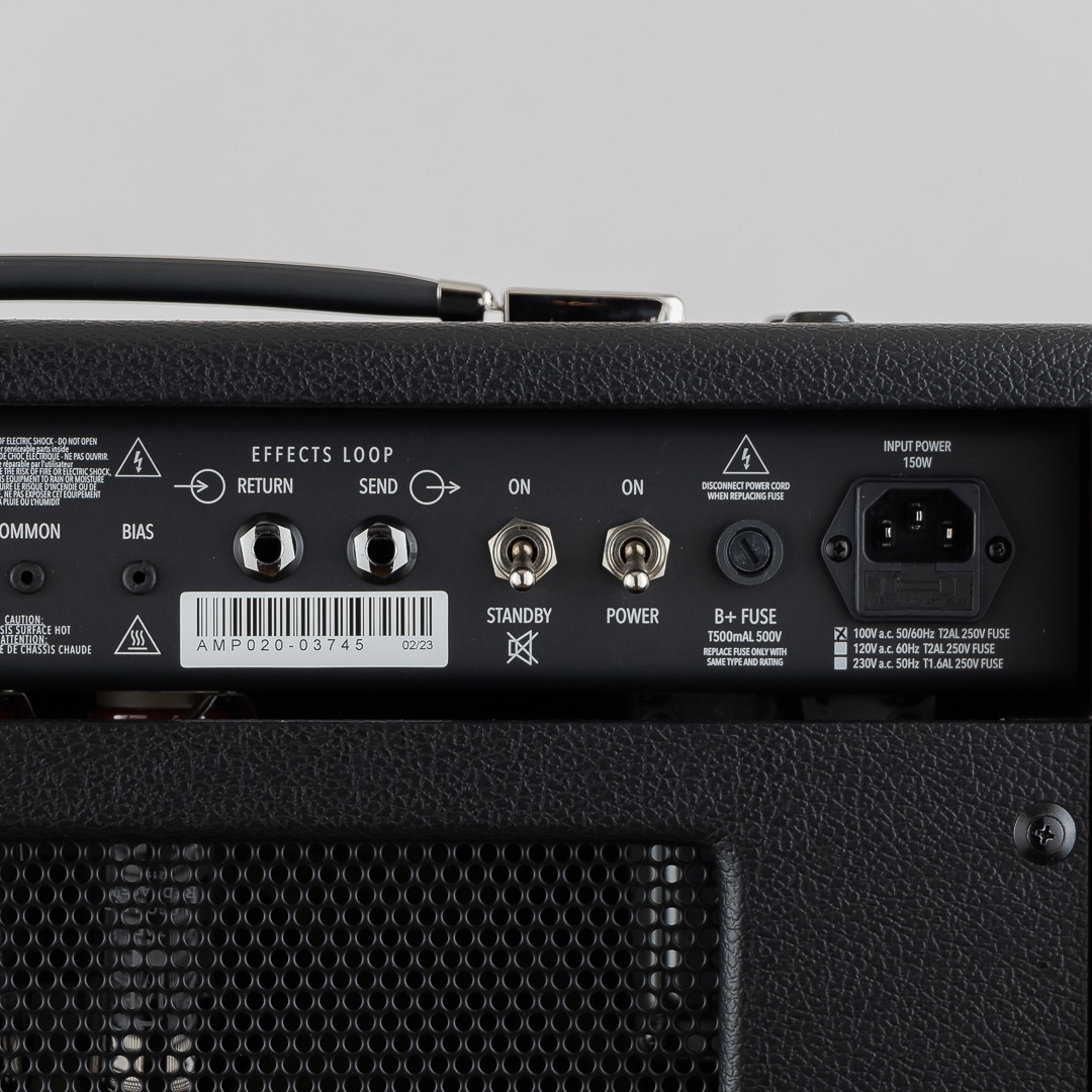 一方でゲイン・チャンネルは、軽く歪んだクランチからハイゲインまで対応するため、2つのチャンネルを全く別のアンプのようにセッティングするだけでなく、ブーストされたクリーン・チャンネルとして使用することも可能です。また、このゲイン・チャンネルは、スピーカー1発のコンボアンプとは思えないほどタイトでクリアな低音を生み出し、ブライト・スイッチは高音域のアタック感が得られるようにチューニングされ、特にシングルコイルのネック・ピックアップと組み合わせた時にその効果を体感することができます。
