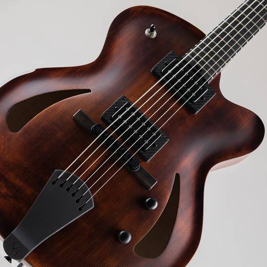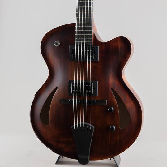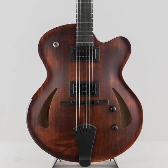 Model 15 Full-Hollow Brown Smoke Satin Catseye Soundholes 2 pickups Black hardware