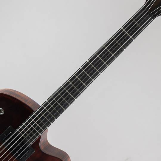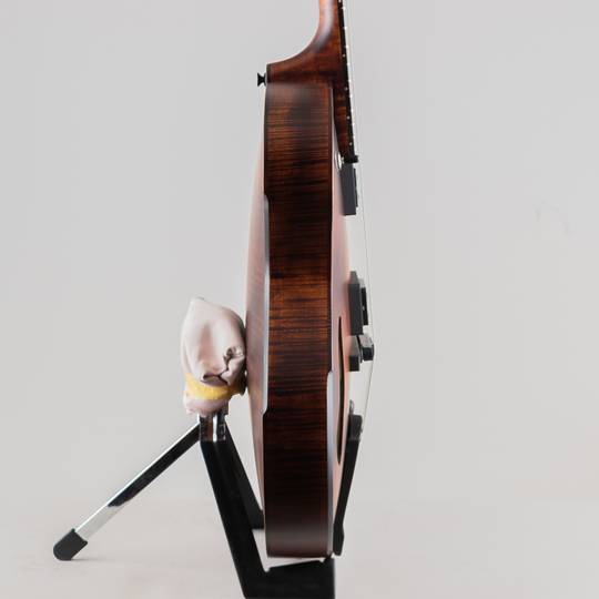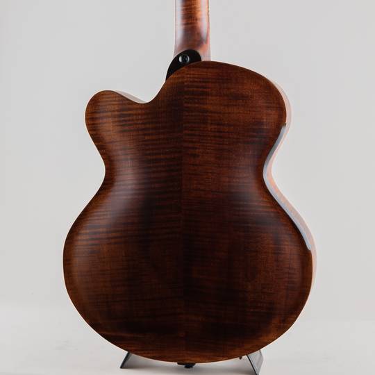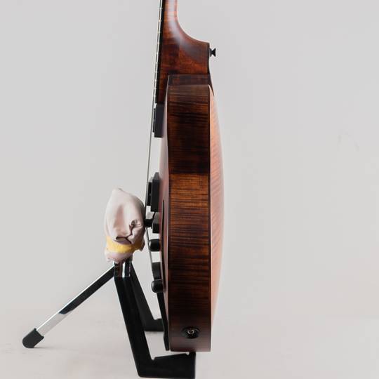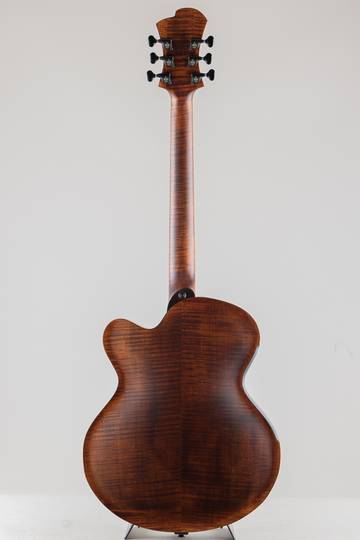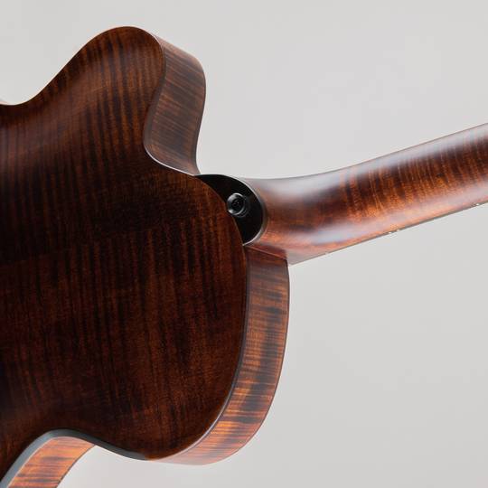 ウッドマテリアルはボディトップに端正な木目のスプルース、サイド/バックは極上杢目のフレイムメイプルが使用されており、ネック材はボディ同様杢目の美しいメイプルとエボニー指板の組み合わせでございます。