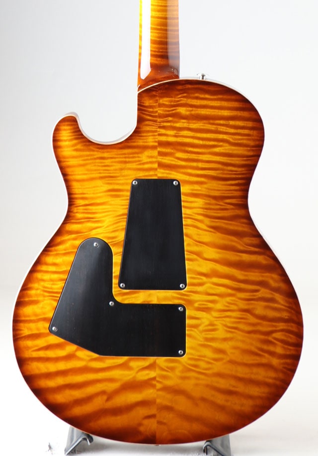 ジャズ、フュージョンにおいても問題なく網羅できる当機。ドライブトーンでアウトプットした際に懸念しがちなハウリングも計算されており、充分に対処できる程で、むしろサスティンの手助けになるロングトーン。トーンノブは引き上げる事でローカットとなり、アタック感を手元のノブでコントロールする事が可能となっております。何といってもサスティナー搭載モデルを熱望していた方も多いのではないでしょうか?ボディバックのカーブに添った精巧なウッドカバーがグレードの高さを感じさせられます。