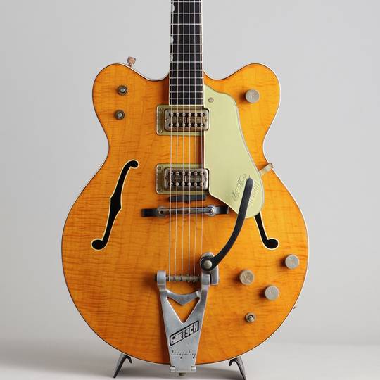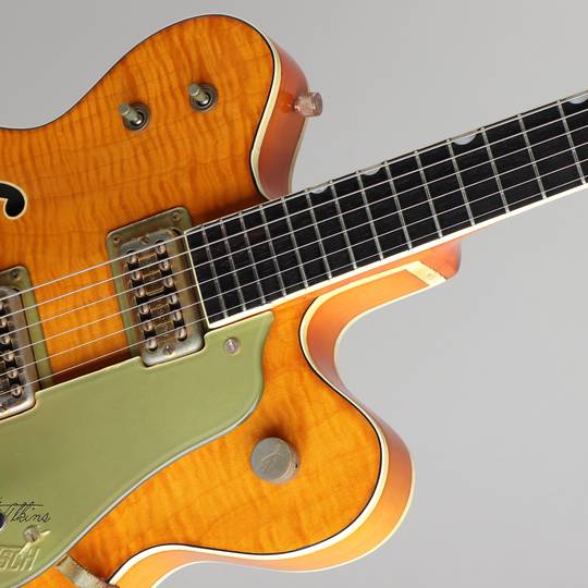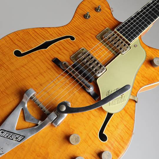 1950年代よりリリースされグレッチの中でも非常に人気の高い6120hollow bodyは現在でもロカビリー系のギタリストに多大な支持を得ておりそのパワフルでクリスピーなサウンドは時代を超えて心地良くいつでも当時へフラッシュバックさせてくれます。今回入荷の本機は60年初期にダブカッタウェイシェイプに変更された比較的初期に当たるモデル。