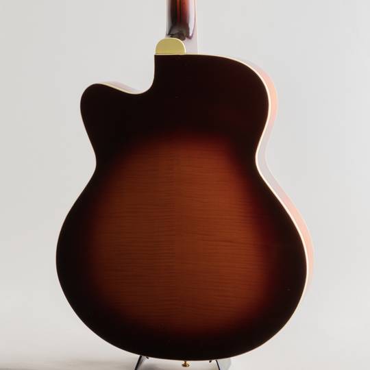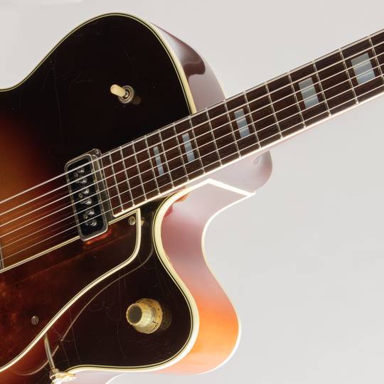 サウンドの特徴と致しましては、アーチトップの単板スプルース、サイドとバックにはメイプル材が使用されており、太く柔らかでありながらも、どこか枯れた印象を感じられ、優しく弾くとシルキーに、強く弾くとドライさが顔をのぞかせるようなサウンドは、弾き手の表現力を余すことなく再現できる個体といえます。