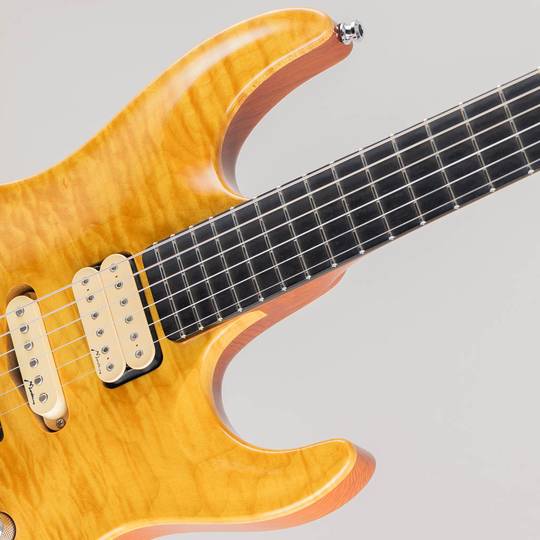 使用される材は全てMarchione氏によって厳選された最上の材となっており、近年では希少材の一つに数えられる極上のキルトメイプルトップにシダー材に近い見た目/特性を持つレッドウッド、マホガニーネック、エボニー指板のウッドスペック。