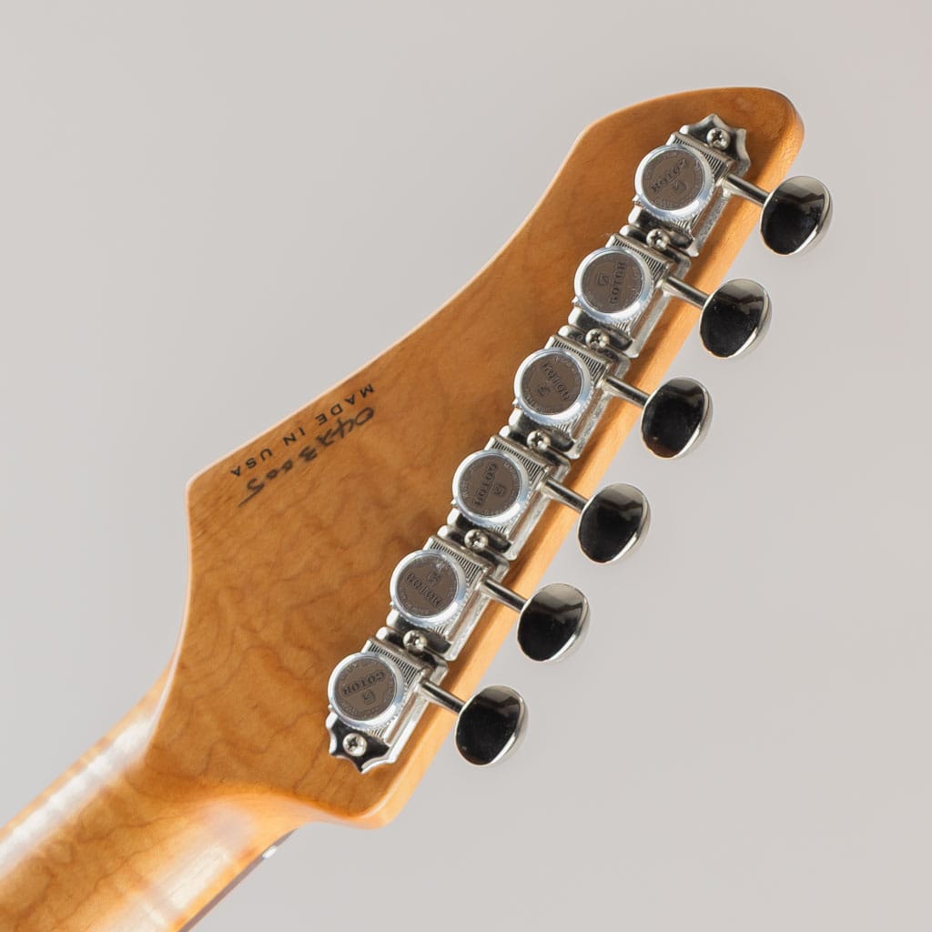 その他仕様といたしましては、2点支持トレモロ / ロックペグによる高いチューニングの安定性を確保し、適度な厚みのネックシェイプ / 9.5"ラジアスフィンガーボード / ミディアムサイズフレットにより快適な演奏性を実現しております。