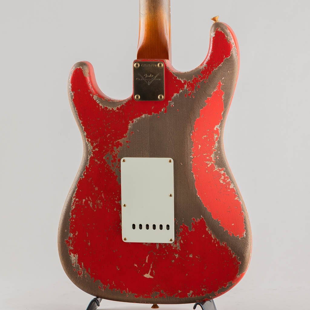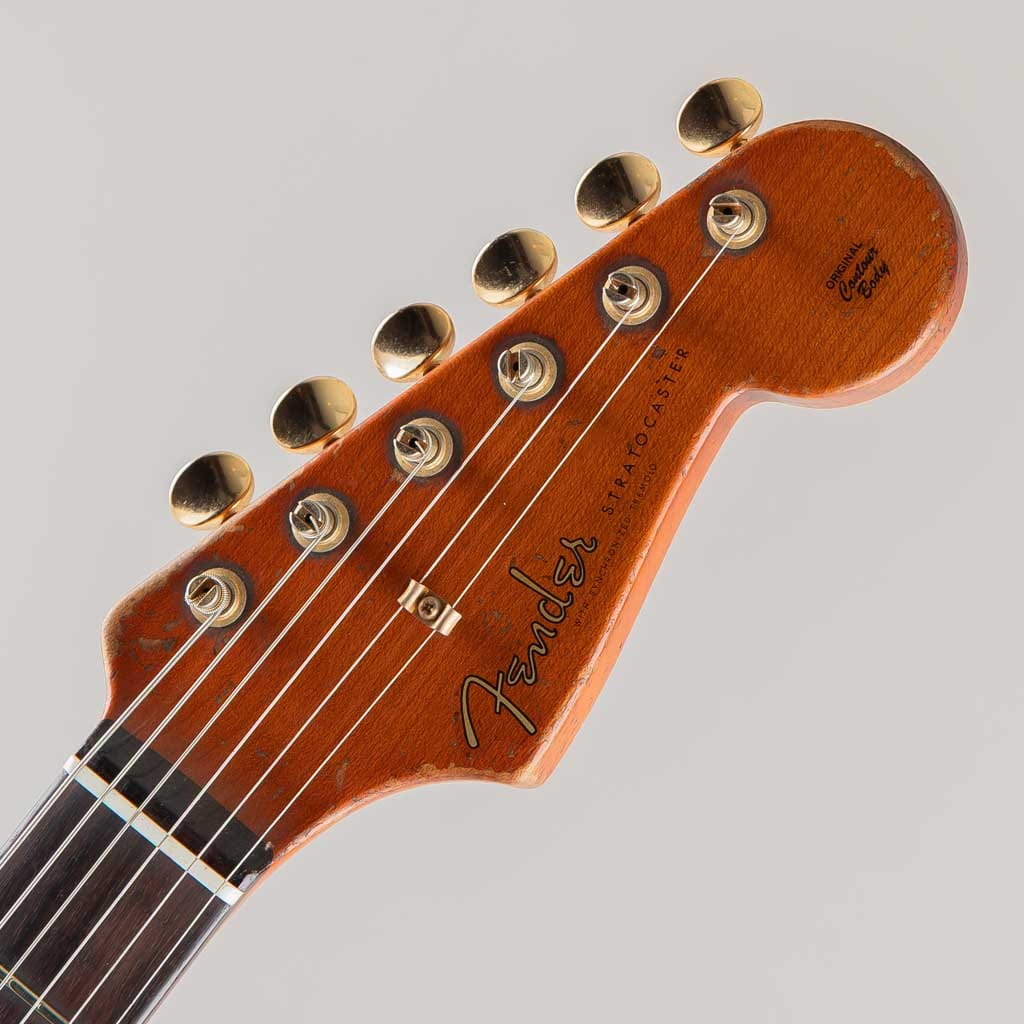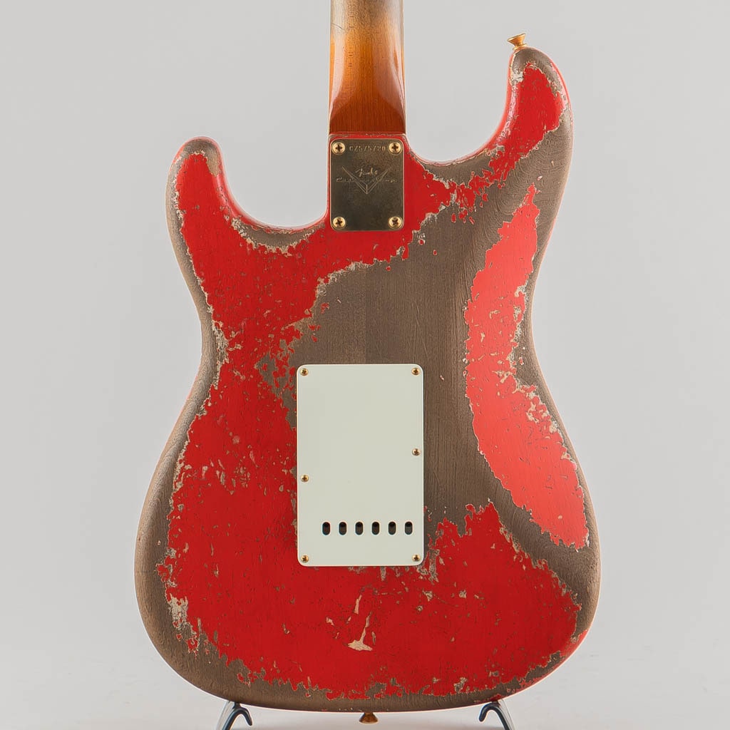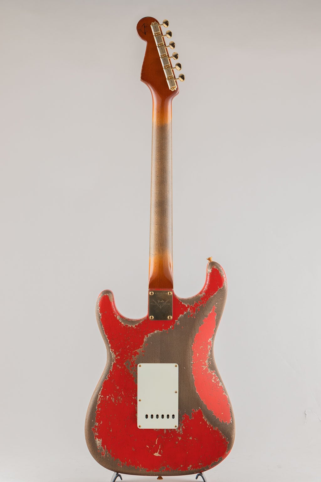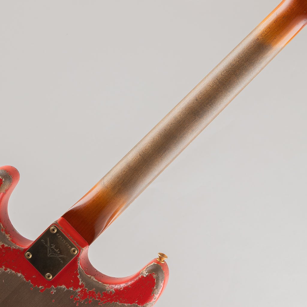 今回入庫の個体は "60 Stratocaster" をベースに製作された1本で、ウッドマテリアルは "Aged Fiest Red" を纏うアルダーボディに、柾目取りのローステッドメイプルネック / スラブ貼りローズウッドフィンガーボードの材構成となっており大胆かつ緻密に施されたレリックワークが目を惹きます。