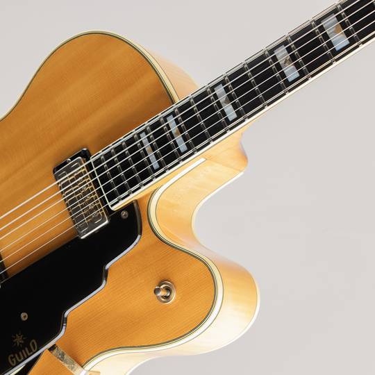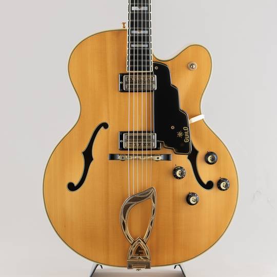 当時のカタログの商品説明に "This is the ultimate in electric guitars ...the pride of Guild's sound engineers and wood craftsmen." とある通りフレイムメイプル材の用いられたボディやネック、手彫りにて意匠が施されたテイルピース、マルチプライのバインディング等々豪華な作りも魅力の1本です。