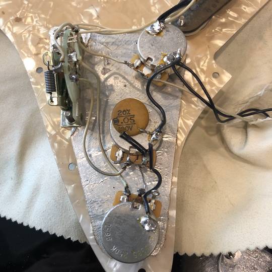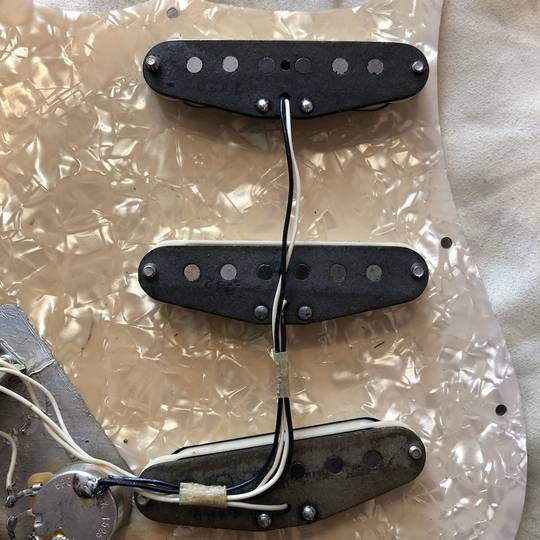 交換箇所に関しましてはフレット、ナット、サドルイモネジ、オクターブ調整用スプリング、トレモロブロック、トレモロスプリング、ピックアップカバー、ノブ、バックプレート、ポット/セレクター/アウトプットジャック、ネジ等の交換が見受けられますが主要パーツはオリジナルを維持しております。