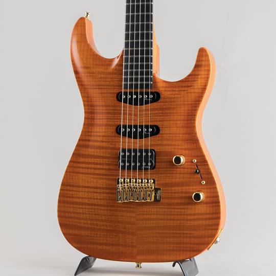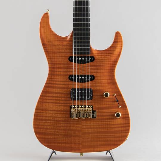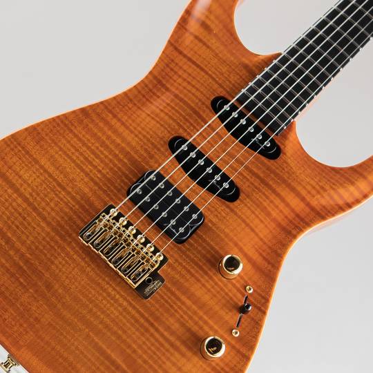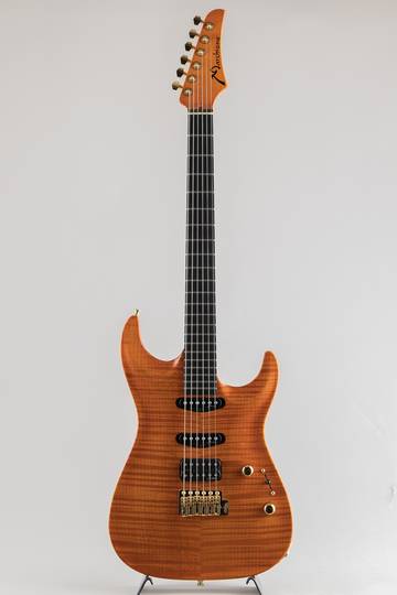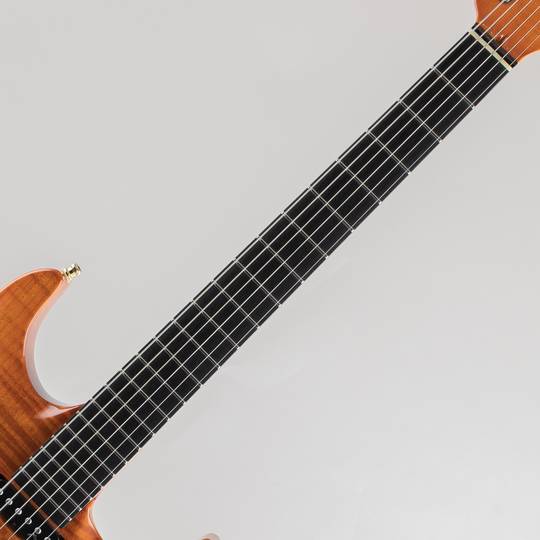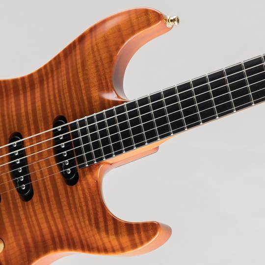 使用される材は全てMarchione氏によって厳選された最上の材となっており、柾目取りされた極上のフレイムメイプルトップは美しいカーブを描き、ボディバックは1ピースマホガニー、ネック部はうっすらとフレイムが浮かぶ目の詰まったメイプル、指板材には黒々としたエボニーが使用されております。