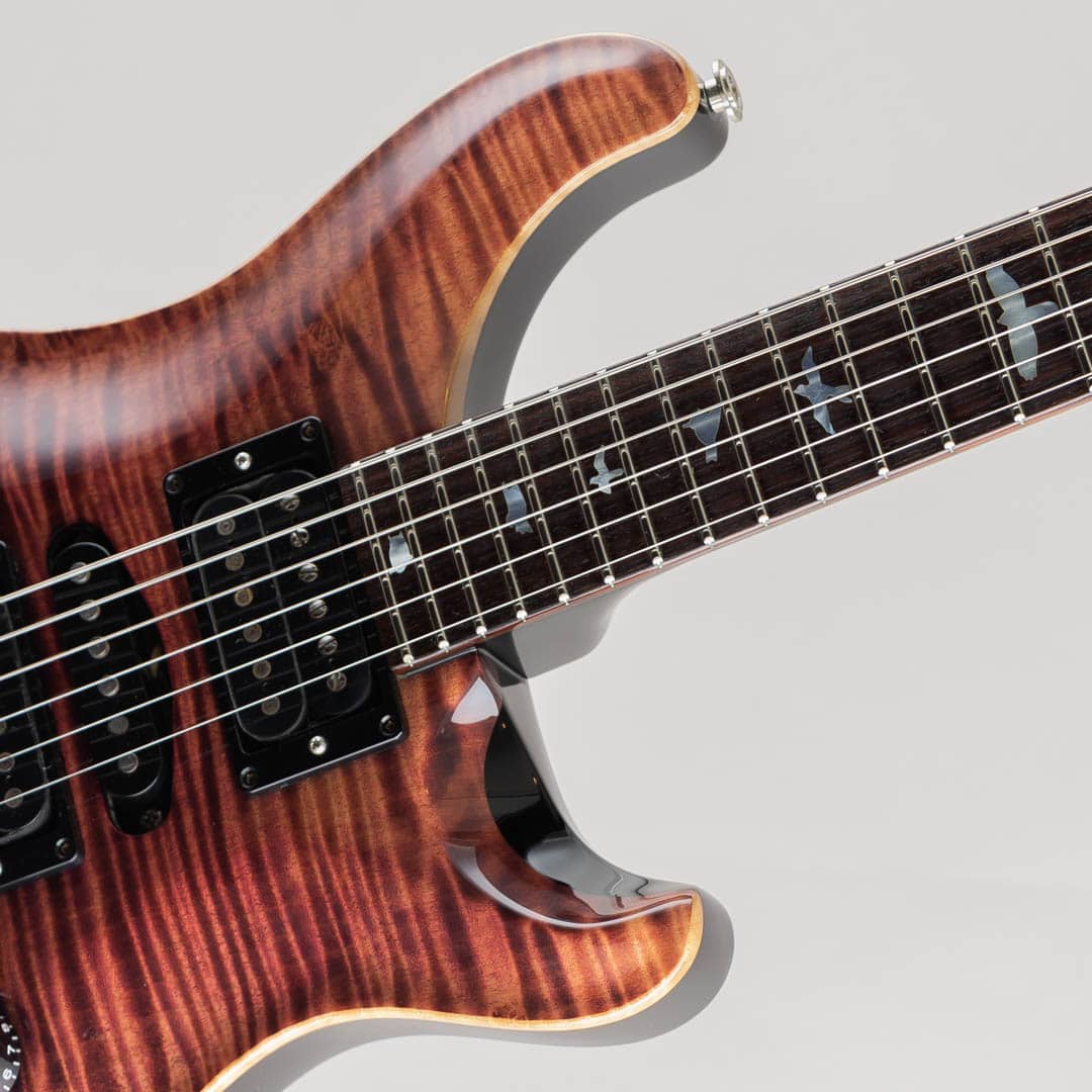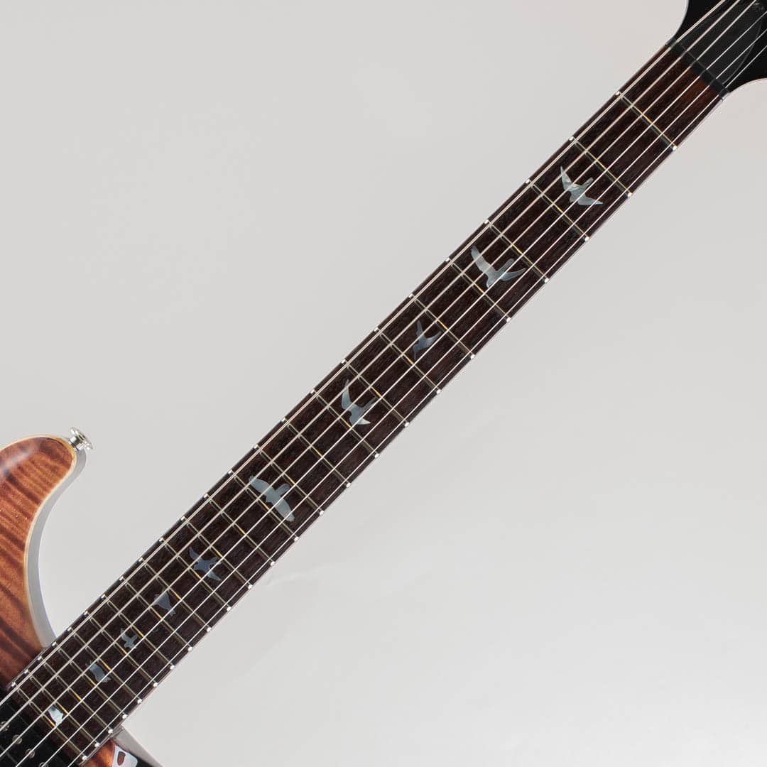 ウッドスペックはCustom24に準じ、"10Top" グレードの美麗なフィギュアドメイプルトップに、マホガニーボディ/ネック、ローズウッドフレットボードの材構成。