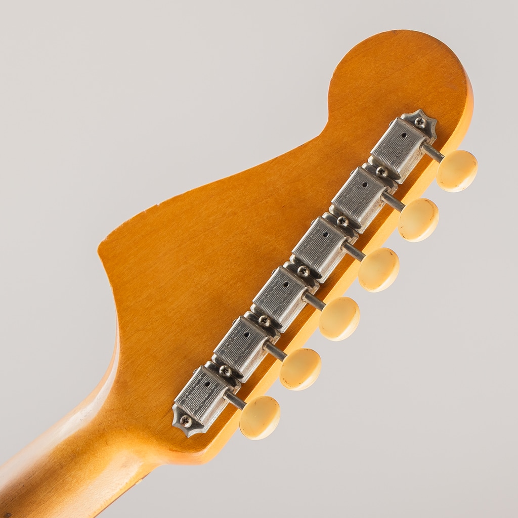 今回入庫の個体は、レッドカラーを纏った1965年製、ラウンド貼りブラジリアン・ローズウッド指板/Aネック仕様の1本でございます。使用および経年に伴う塗装のヤレや焼け、チェッキング等が見られ、新品には決して出すことのできないヴィンテージギターならではのオーラを放っております。