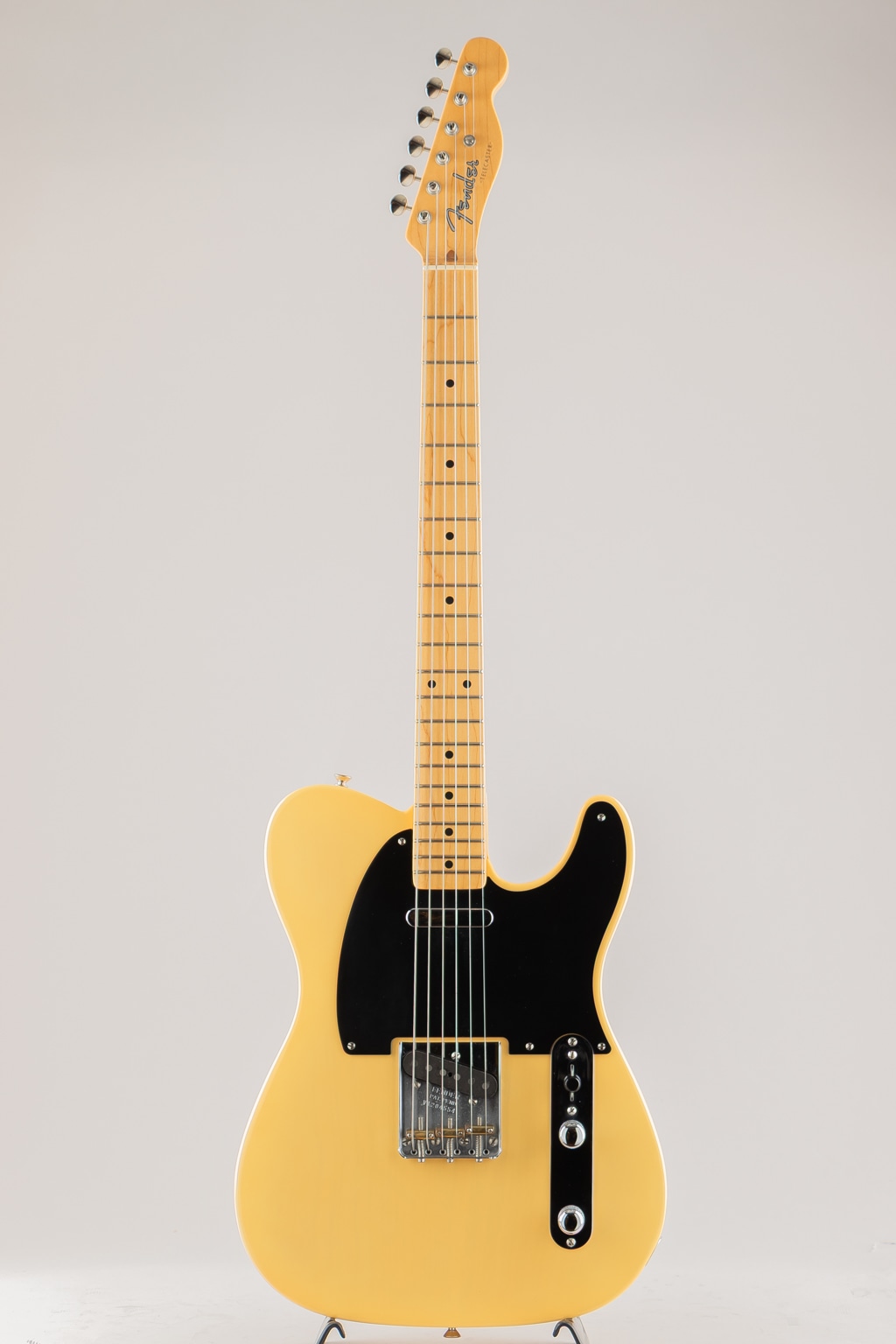 アッシュボディのメイプルネック / メイプル指板という史実通りのウッドマテリアル、1プライ・ブラックピックガード、マイナスビスの使用など、抜かりの無い史実通りのスペックとなっております。