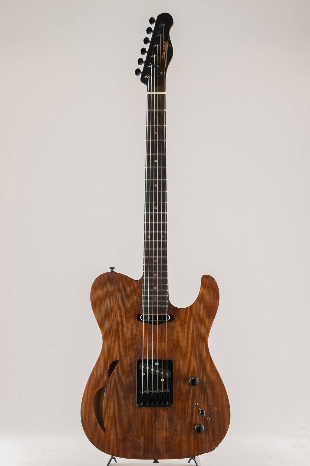 今回入庫の個体はTLシェイプをベースに、彼ならではの独創的なアイデアを随所に盛り込み、エレクトリックとアコースティックの要素を高次元で融合させた1本です。