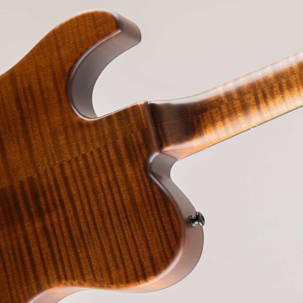 トップにはヨーロピアンスプルースを使用し、Xブレイシングおよびフローティングブロック構造を採用。サイド&バックにはくり抜き構造のアルパイン・メイプルを用い、ネックはアルパイン・メイプルにエボニーフィンガーボードを組み合わせています。いずれも30年以上自然乾燥させた最高級ヨーロッパ材のみを使用しており、厳選されたトーンウッドと独自構造の組み合わせにより、空気感のある豊かな生鳴りとエレクトリックとしての明瞭な輪郭を両立。音の芯がぶれることなく、クリアで締まりのあるサウンドを生み出します。