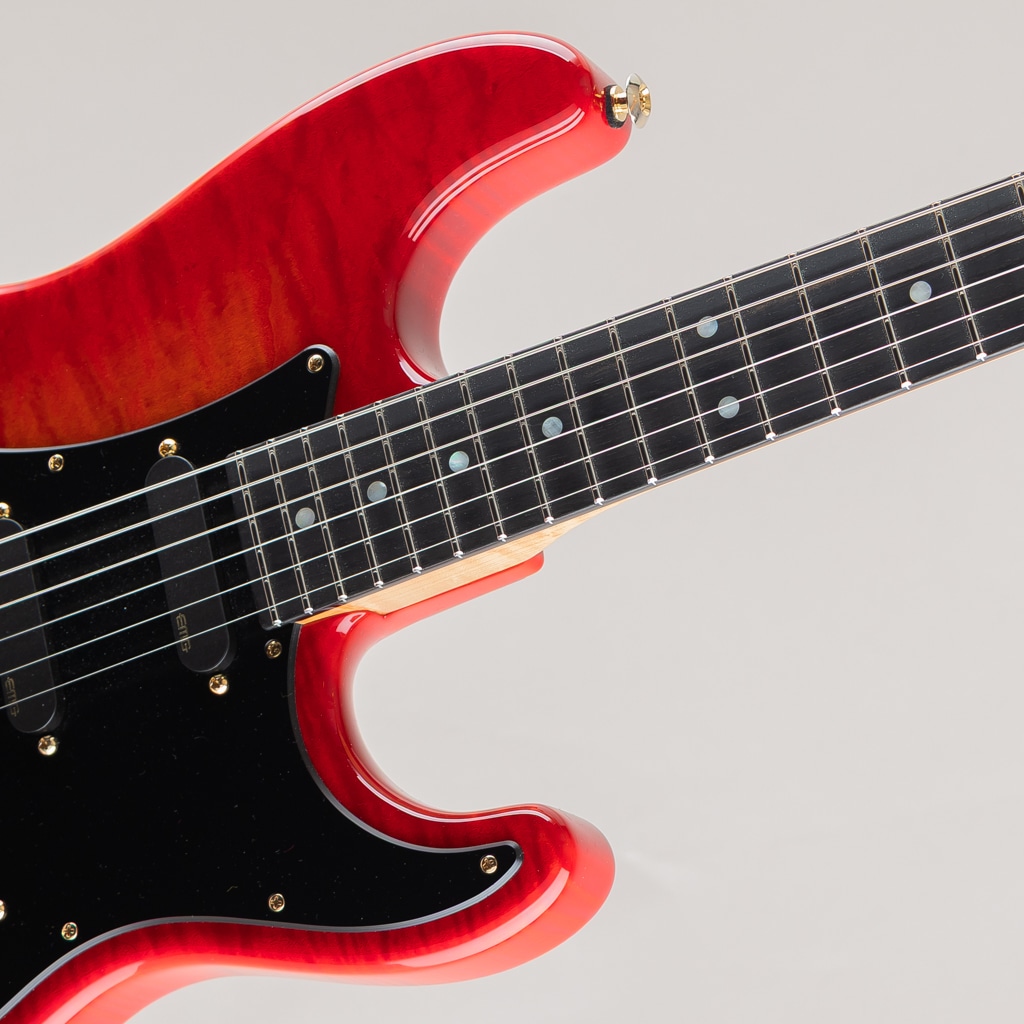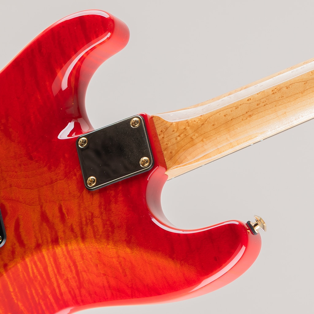 今回入庫いたしました個体は定番モデル "Classic S" を基にオーダーが行われた1本で、現在では入手が困難な1ピースキルトメイプルをボディ材に用い、ネック部はローステッド加工の施された "3A" グレードのバーズアイメイプルネック/目の詰まったエボニーフィンガーボードの材構成。