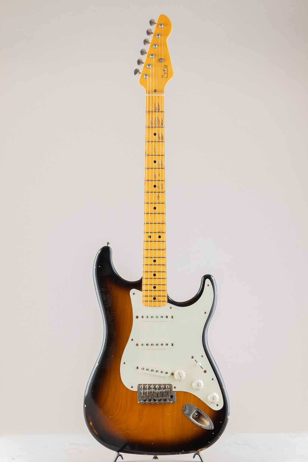 アッシュボディ&やや厚みのある柾目の1ピースメイプルネックの50'sスタイルの1本で、曇りの無いストレートかつクリアな出音を聞かせてくれます。