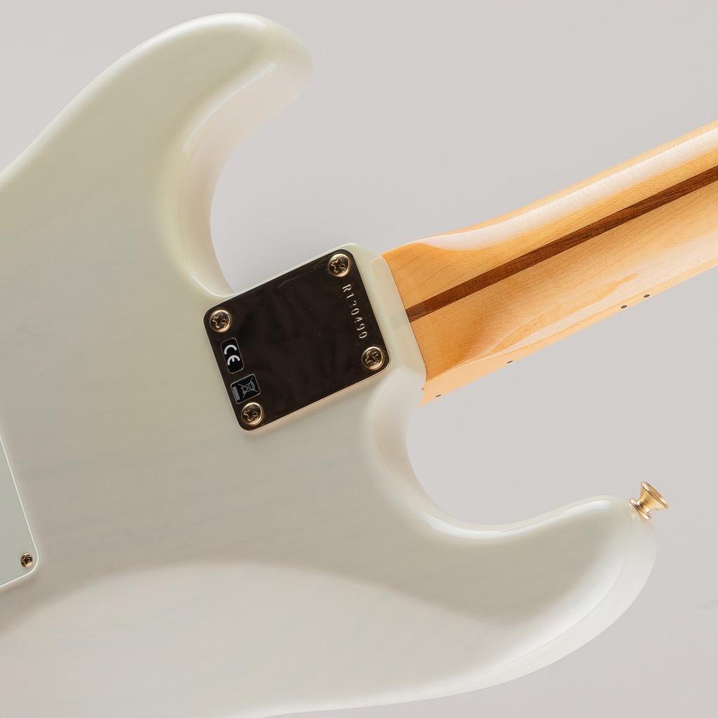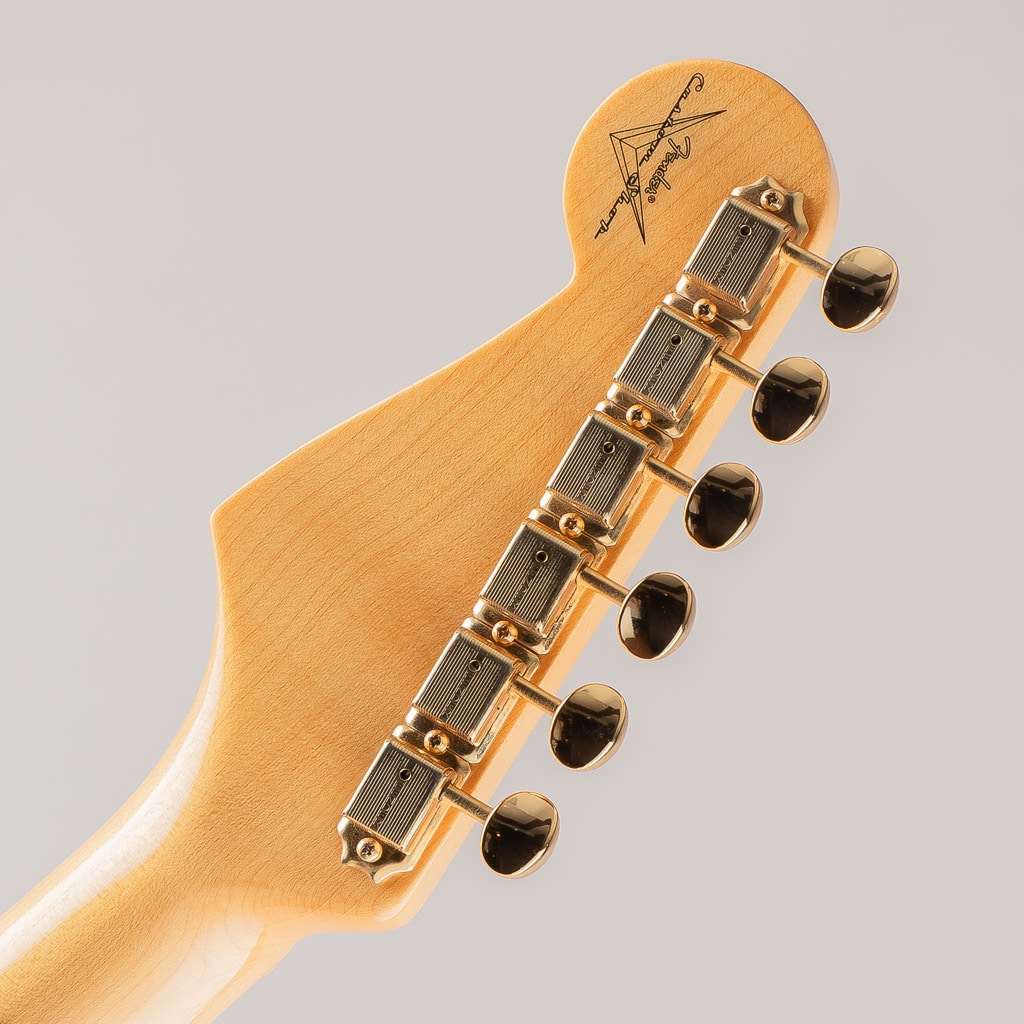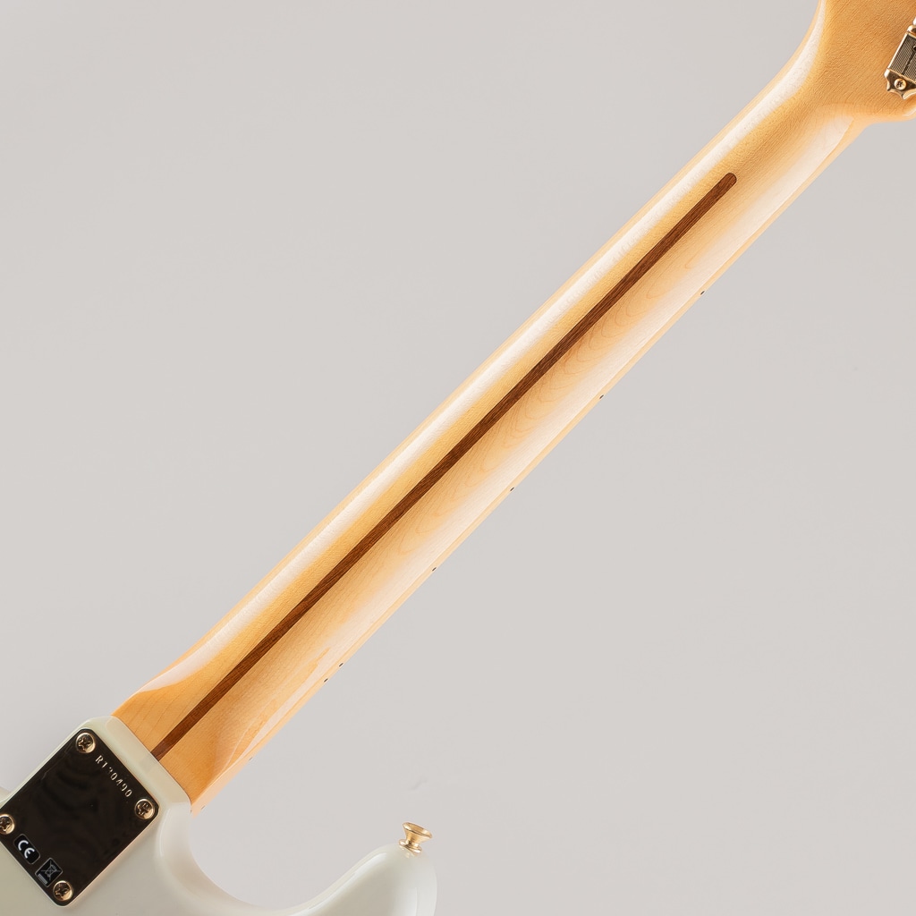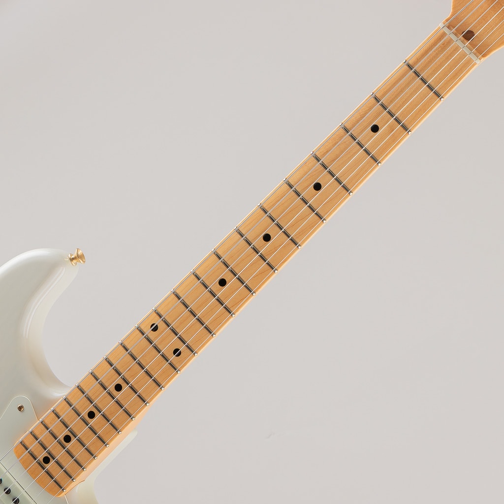 フェンダーがカスタム製作した初期のモデルのひとつが、「Mary Kaye」として知られるギターです。ホワイトブロンドの塗装と、ゴールドハードウェアを組み合わせたこのギターは、いくつかの広告で紹介され、最終的に“最も望ましいStratocaster”のひとつになりました。Vintage Custom '57 Stratは、エレガントで見栄えのするギターを楽しむチャンスで、外観、サウンド、フィーリングに50年代のスタイルが宿っています。1ピースのアッシュボディは、より木材の持続的な呼吸を可能にするために、完璧なNOSフラッシュコートラッカーの塗装が施され、独特な雰囲気を身に付けています。着色された柾目のメイプルネックには、"'57 V"プロファイルが施されています。メイプル指板は、7.25インチ(184ミリ)-9.5インチ(241ミリ)のコンパウンドラジアスを採用、コードと単音プレイの両方において理想的なフィンガリングを可能とします。ヴィンテージスタイルのワイヤリングで接続された、Hand-Wound '57 Stratシングルコイルピックアップのトリオは、その年代の本格的でオリジナルなトーンを提供します。