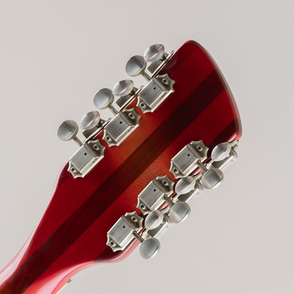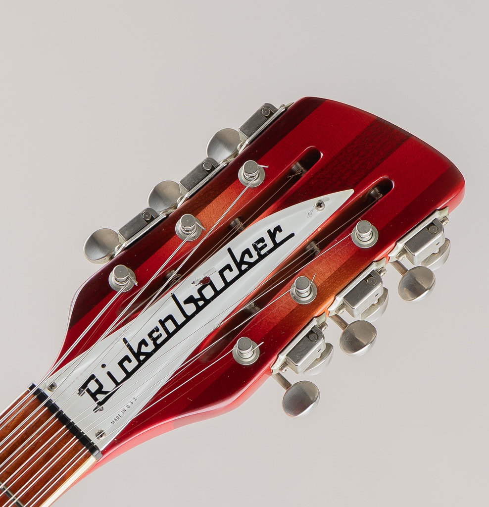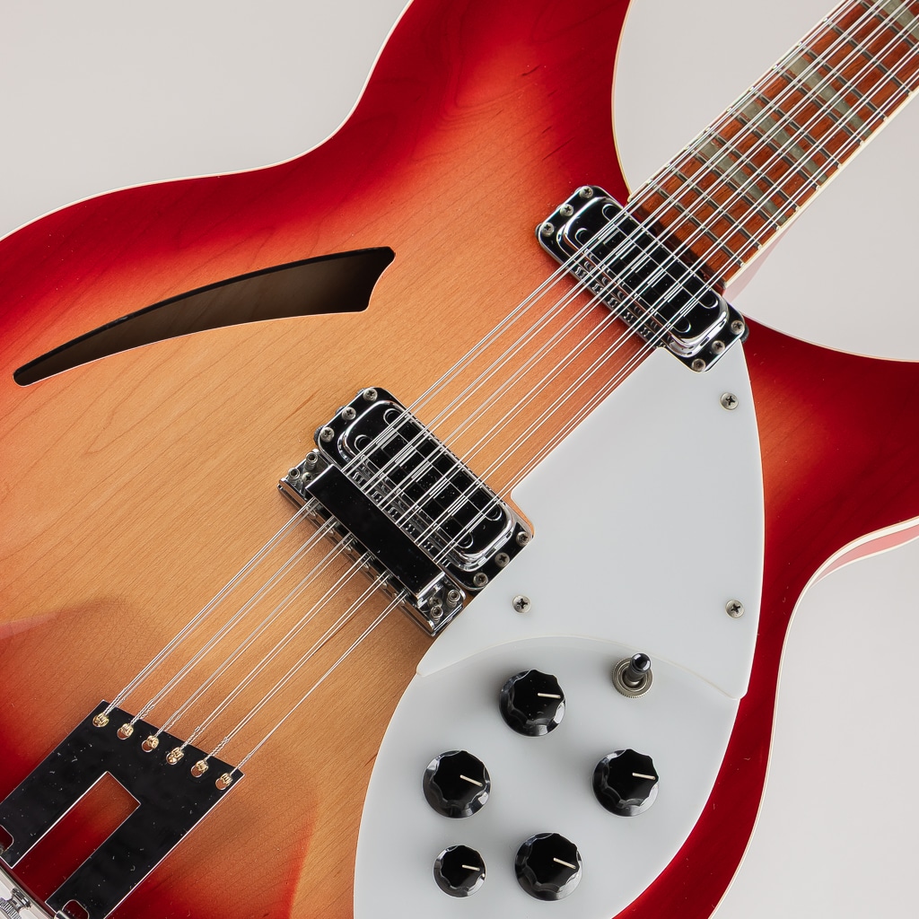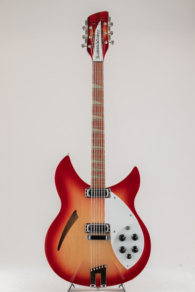 特徴的なペグの交差する12弦ヘッド、トースタートップ・ピックアップを2基搭載し、テールピースはトラピーズタイプを採用。メイプルボディーらしいパリッとしたクリアなサウンドに、特有のエアー感が加わったリッケンサウンド!12弦のコーラス感と相まった当モデルならではのグッドサウンドをお楽しみ頂けます。