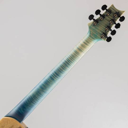 ウッドマテリアルは多弦も考慮し、メイプルネックにエボニー指板をチョイス。ボディは1ピースのスワンプアッシュをバック材に、トップウッドはPSグレードでしか成し得ない、スピリチュアルな杢目が窺えるバールメイプルを配しております。ヘッド部の突き板にもその眩いバールメイプルを使用し、Royal Blue Glowカラーとサテン仕上げのフィニッシュが相まることで、神秘的な印象を醸し出しております。