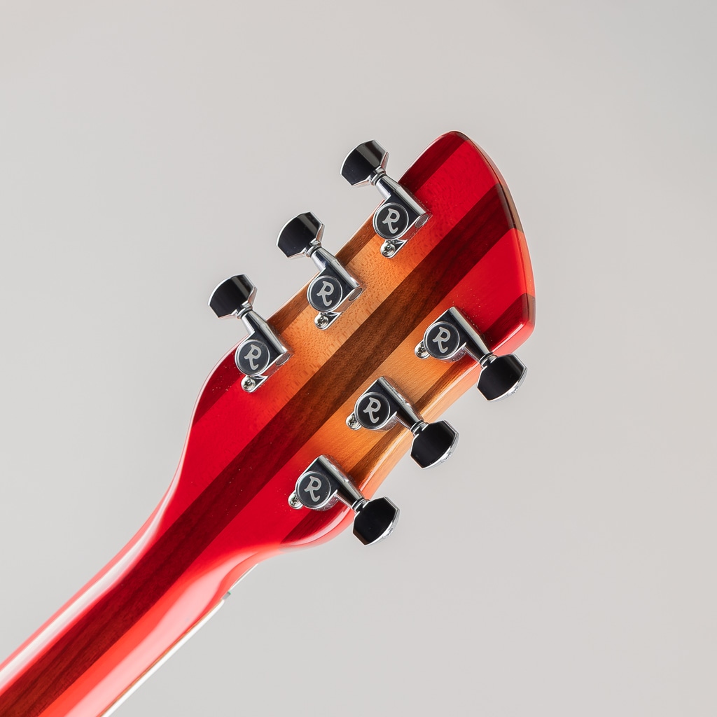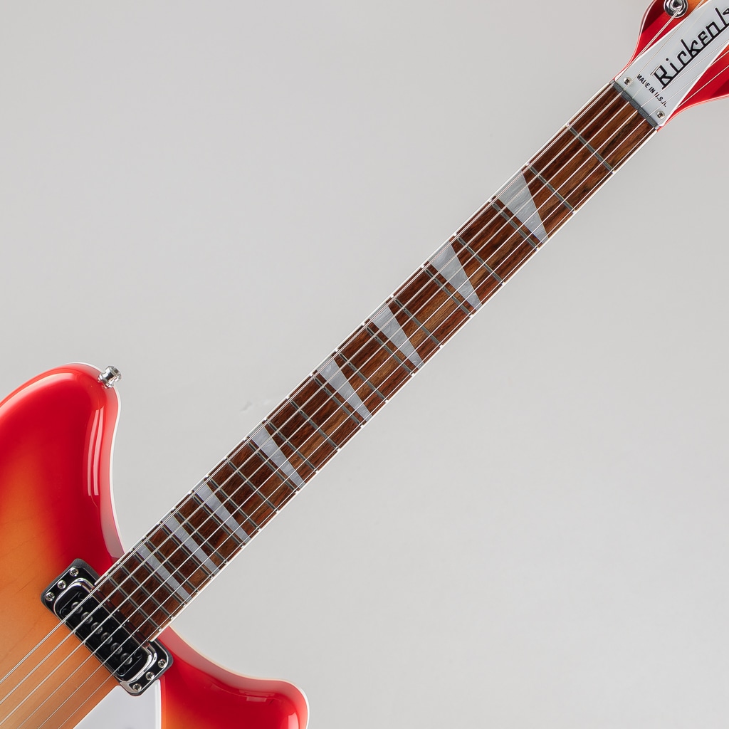 三角形のサウンドホール&トライアングルポジションマーク、ボディバックのみシングルバウンドが施され、Rickenbackerラインナップの中でも上位機種的位置付けのモデルとなり、非常に魅力的な外観です。