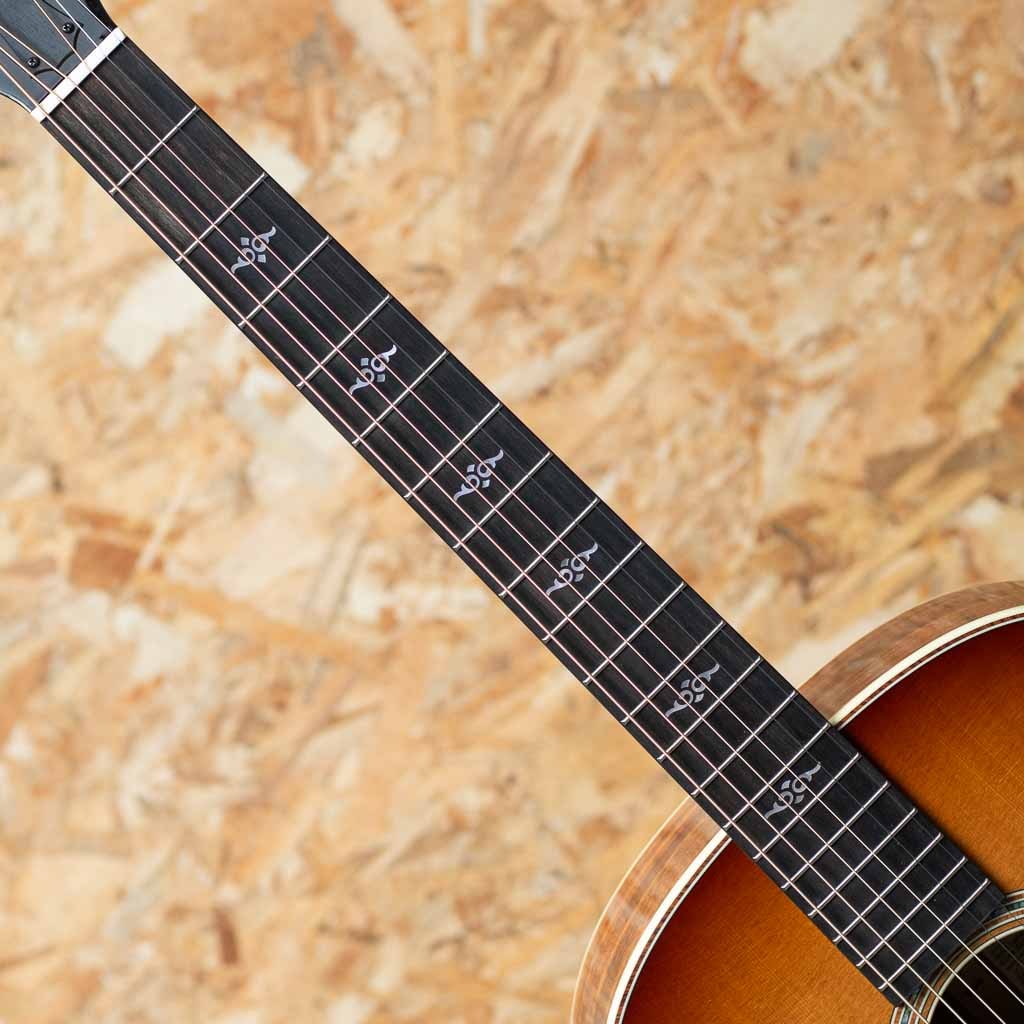 1974年にボブ・テイラーとカート・リスタグの2人によって創立されたテイラー・ギター。革新的なアイデアと高い技術力、ハイセンスなマーケティングで2000年代より急速に成長し、今や世界のトップアコースティックブランドに成長したテイラー社。国内をはじめ特にアメリカではプロミュージシャン使用のシェア率が大変高く、圧倒的な人気を誇っています。本器は”新しいタイプのテイラーサウンドを世界に解き放つ”ニューコレクション”Gold Label 814e”。トリファイドスプルーストップ、ハワイアンコアサイド&バック、ネオトロピカルマホガニーネック、アフリカンクレリカムエボニー指板、ホンジュラスローズウッドブリッジ、マザーオブパールコンチネンタル指板インレイ、ロックメイプルバインディング、Gotoh510チューナー、LR Baggs Element VTC搭載。Goldの名に相応しい最高級のトーンウッドにて製作されるこちらのコレクションは、V-Classブレーシング構造の利点がより反映されるSuper Auditoriumボディシェイプを採用。人気の人気の高いGrand Auditoriumシェイプを基に下部を僅かに伸ばしたスタイルです。また、V-Classブレーシングにも改良が加えられ、1930~40年代のアコースティックギターからインスパイアされたウォームでウッディなサウンドと甘くレンジが広い音色を得られる新構造のFanned V-Classブレーシングが取り入れられており、その工程には伝統的かつ音響性に優れるホットハイドグルーが使用されています。従来よりもより強固でより簡単に正確なネックアングルの微調整を可能にしたロングテノンネックジョイントはボディ全体の共振が改善され、必要に応じていつでも超精密な調整が可能となりました。音量とサスティンを高い次元で両立させるテイラーギターの新しい選択肢。ぜひお手元で弾き心地をお確かめください。 Condition:NEW Top:Solid Torrefied Spruce Top Side:Solid Hawaiian Koa Back:Solid Hawaiian Koa Neck:Neo-Tropical Mahogany Fingerboard:West African Crelicam Ebony Bridge:Honduran Rosewood Machine Head:Gotoh510 Fingerboard Inlay:Mother-of-Pearl Continental Rosette:Abalon & Wood Binding:Rock Maple Pick Guard:Tortoise color Pick up:LR Baggs Element VTC Nut width:44.5mm Scale:647.7mm Case:Original Hard Case