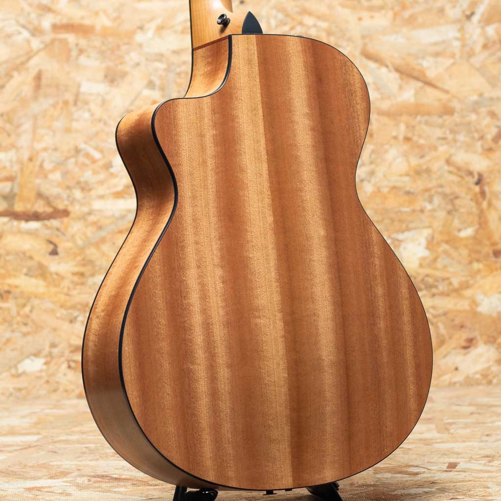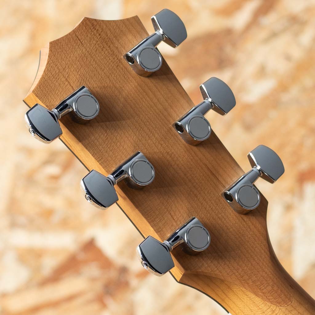 1974年にボブ・テイラーとカート・リスタグの2人によって創立されたテイラー・ギター。革新的なアイデアと高い技術力、ハイセンスなマーケティングで2000年代より急速に成長し、今や世界のトップアコースティックブランドとして、一般ユーザーからプロミュージシャンまで、幅広い層から確固たる支持を得ています。本器はトップにトリファイドスプルース単板、サイド&バックにレイヤードサペリを用いたエレアコモデル。やや小ぶりで取り回しの良いグランドコンサートサイズ。サペリ材を使用したこちらのモデルは暖かみのあるウッディなサウンドが耳に心地よく、コードストローク、フラットピッキング、フィンガーピッキングを問わずオールラウンドに使用できます。またカッタウェイ仕様の為、ハイポジションもスムーズに演奏可能。ES-2搭載でライン出力時にもリアルなアコースティックサウンドを奏でます。オリジナルギグケース付属