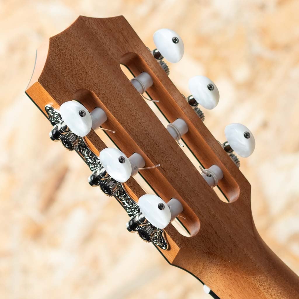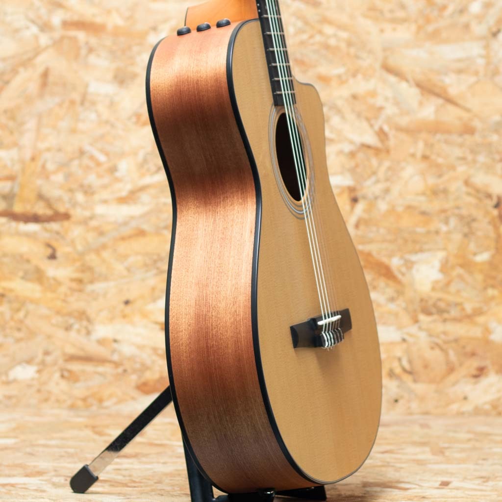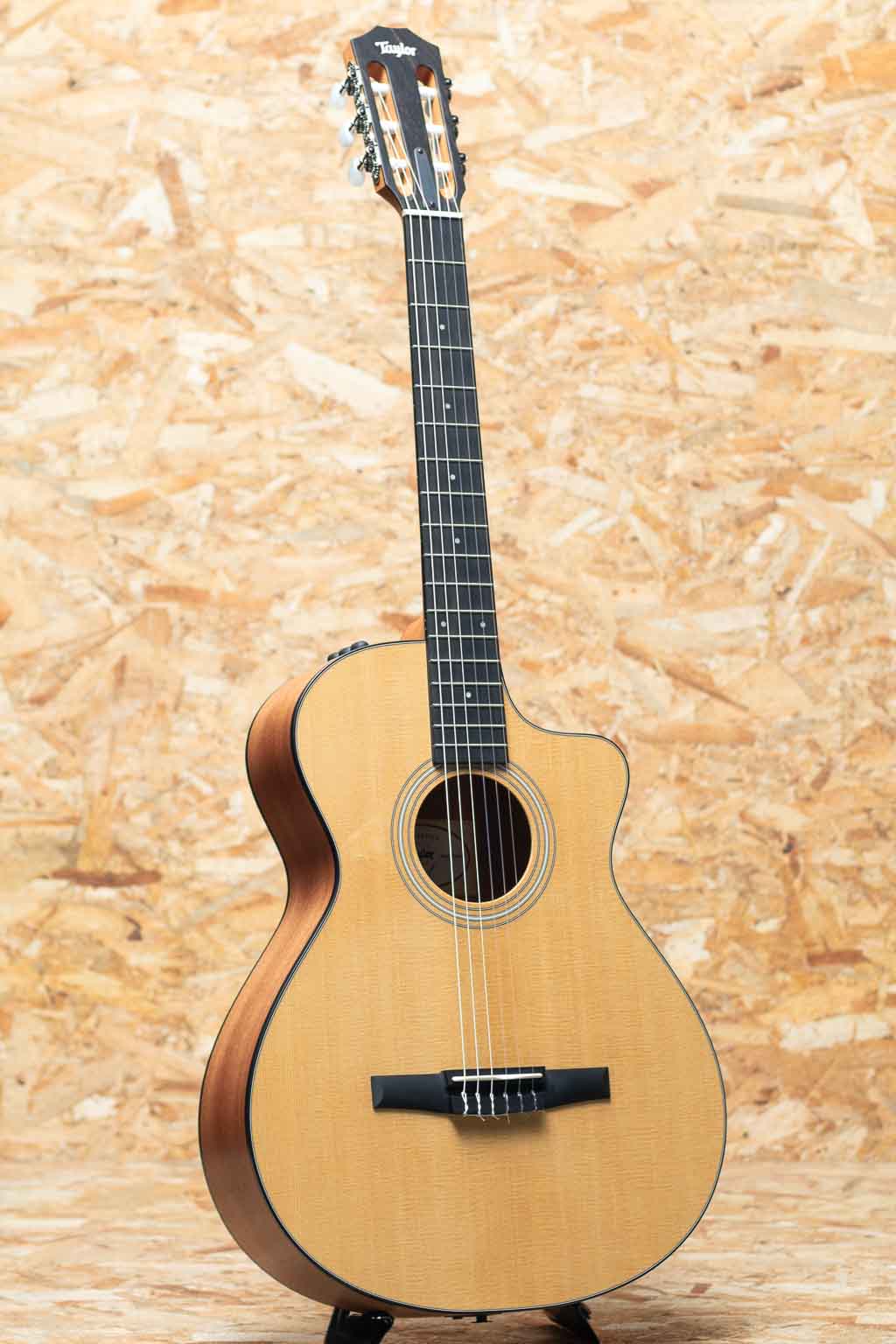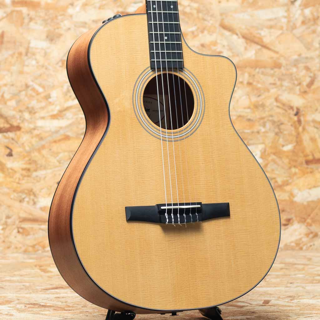1974年にボブ・テイラーとカート・リスタグの2人によって創立されたテイラー・ギター。革新的なアイデアと高い技術力、ハイセンスなマーケティングで2000年代より急速に成長し、今や世界のトップアコースティックブランドとして、一般ユーザーからプロミュージシャンまで、幅広い層から確固たる支持を得ています。本器はトップにトリファイドスプルース単板、サイド&バックにレイヤードサペリを用いたエレガットモデル。やや小ぶりで取り回しの良いグランドコンサートサイズ。サペリ材を使用したこちらのモデルは暖かみのあるウッディなサウンドが耳に心地よく、フィンガースタイルの演奏やライトなストラミングに最適なクリアでバランスの取れた音色を奏でます。 47.6ミリのナット幅(従来のクラシック ギターの ネックよりも狭い)により、特にスチール弦ギターから移行する人にとってもおすすめです。 ES-Nピックアップ・システムによりレコーディング・スタジオでもライブ・ステージでもすぐにアンプサウンドに対応可能な即戦力モデルです。オリジナルギグケース付属
