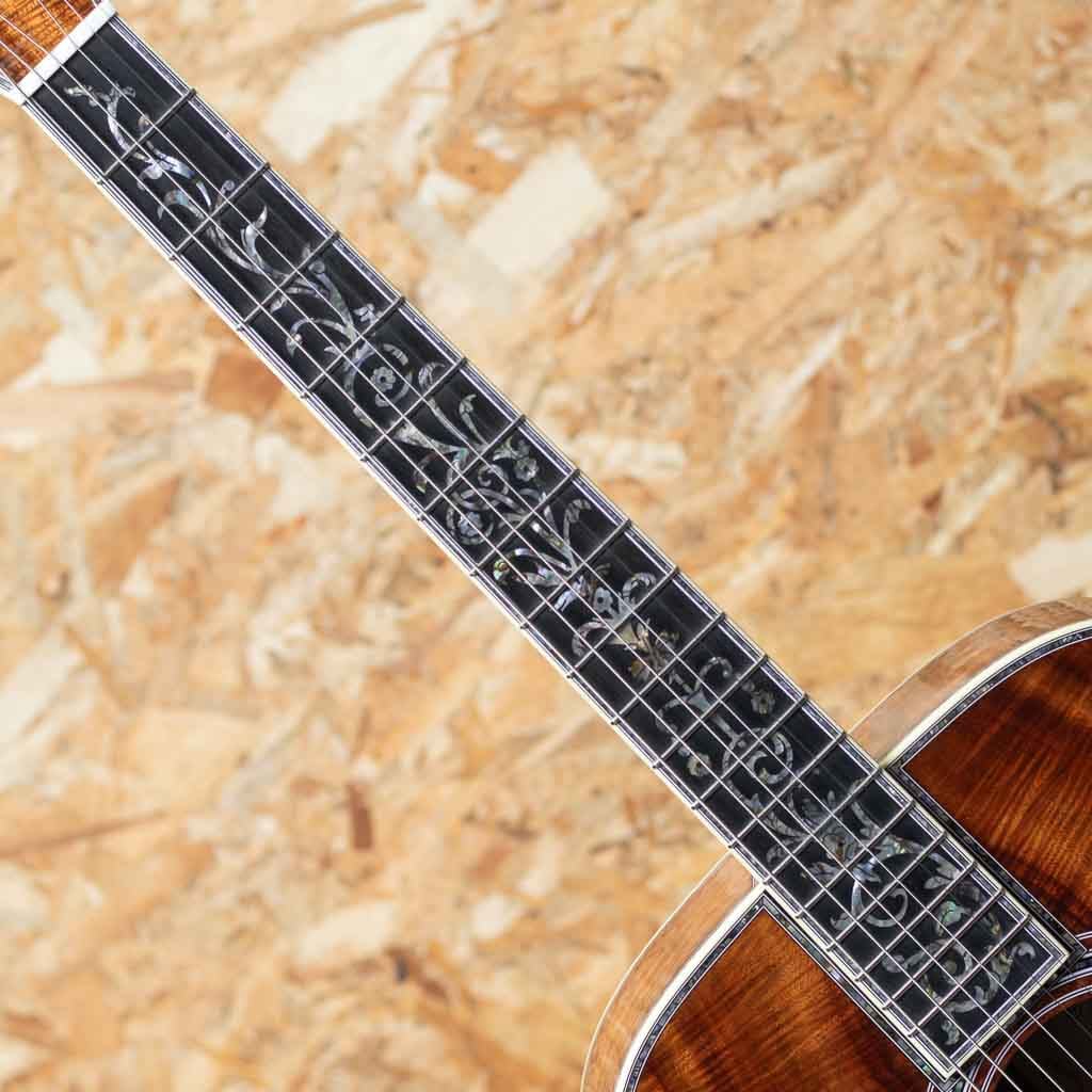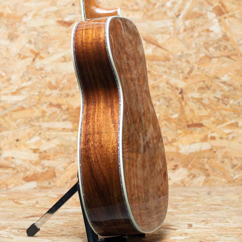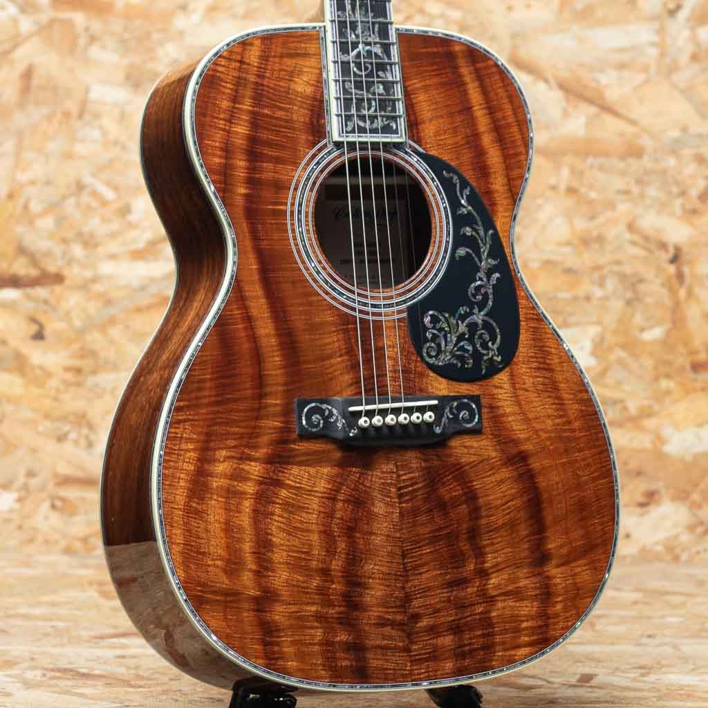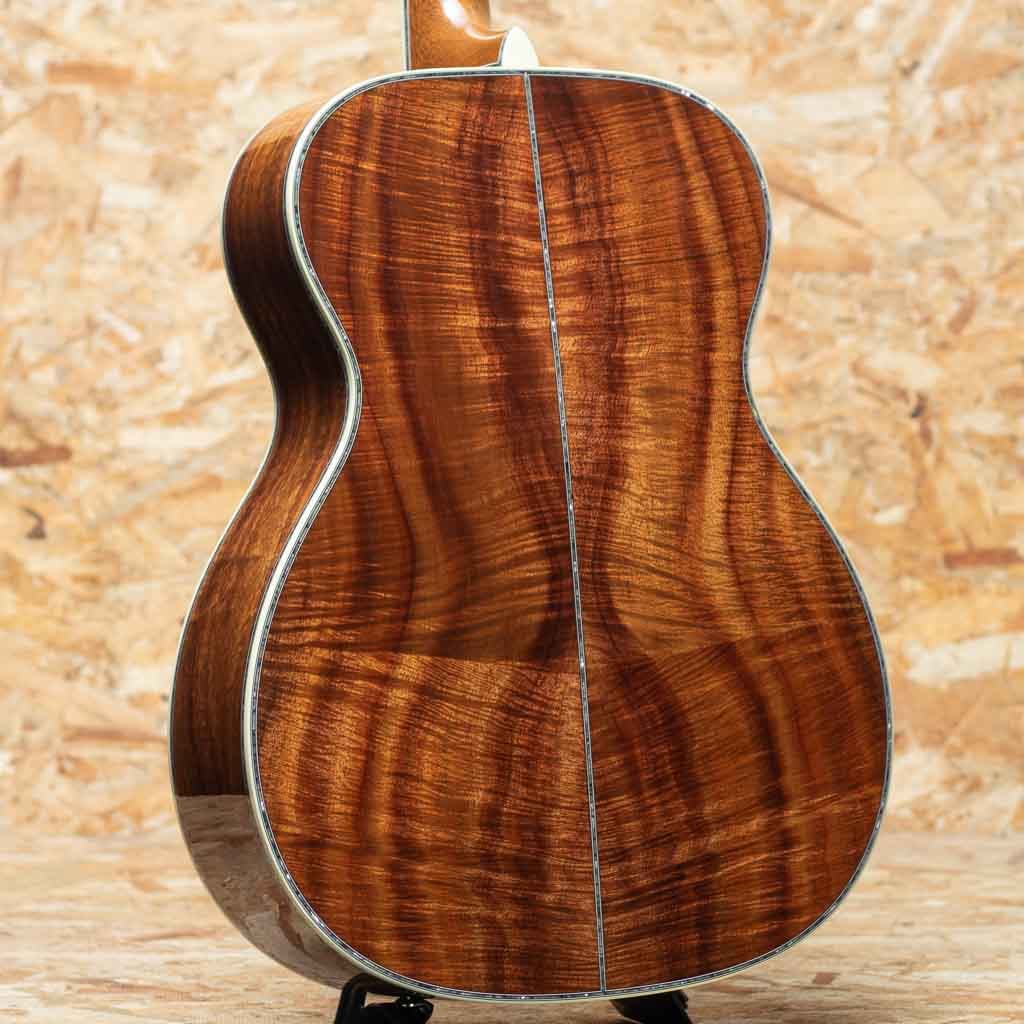 世界を代表するアコースティックギターブランド"MARTIN"。本器は三木楽器創業200周年を記念して特別に製作された"OOO-45K2 T.O.L."カスタムショップモデル。2023年、弊社スタッフが実際にマーティンファクトリーを訪問し、ボディ材をセレクト。1年半の年月を経て完成した大作です。トリプルオーボディの45スタイルをベースに、ファクトリーにて選定したプレミアムグレードのハイリーフレイムドコア材をボディ全面に採用。指板、ピックガードにツリーオブライフインレイを施し、ブリッジにはアイランドスクロールインレイ、そしてギター全体の随所にアバロンの装飾を施した豪華デラックス仕様。ヘッドには象徴的な縦ロゴが光り、ウェバリー製エングレイブドボタンのゴールドペグが存在感を放ちます。ネックは43mm幅、各部の接着にはニカワを採用、 仕上げは Thin Finish。見た目の美しさだけでなく、演奏性、サウンド面も追求した極上の1本。インナーラベルには"MIKIGAKKI 1825-1925 200TH. ANNIVERSARY"と特別な印字が施されております。マーティンカスタムショップの刺繍入りデラックスハードケース付き。ドレッドノートサイズモデルが2本、トリプルオーサイズが1本、合計3本のみ製作の三木楽器限定アニバーサリーモデルです。