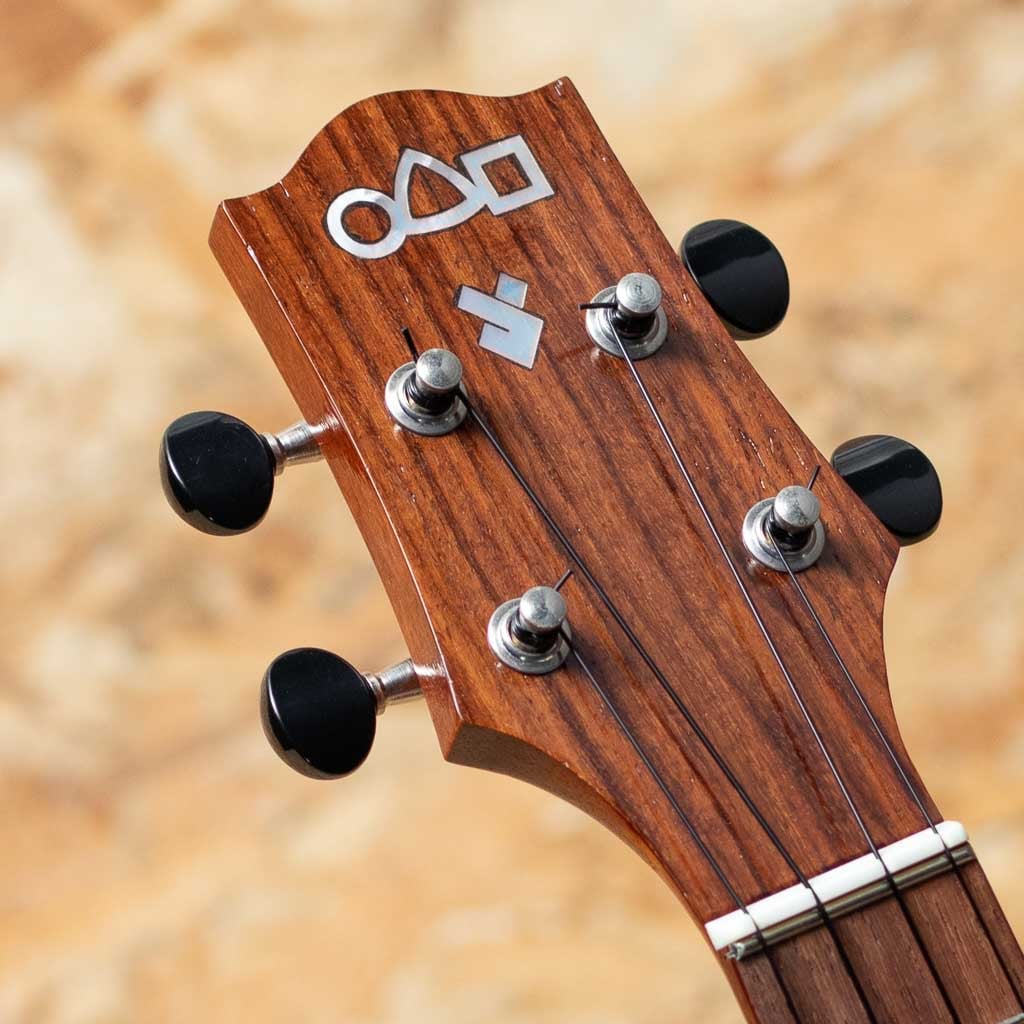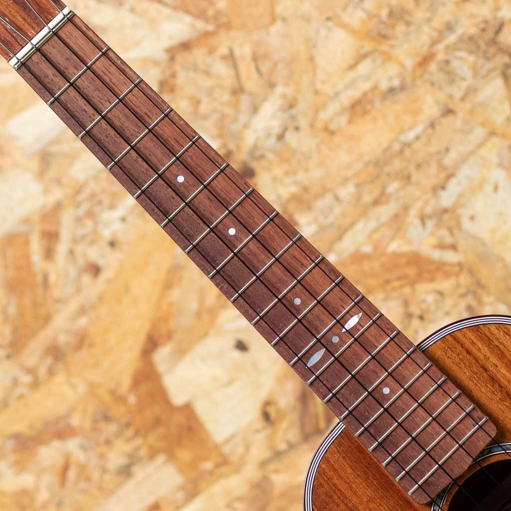 ・占部ウクレレ特有のやや薄めで握り易いネックシェイプ、0フレット仕様でローポジションの弾き易さは格別です。