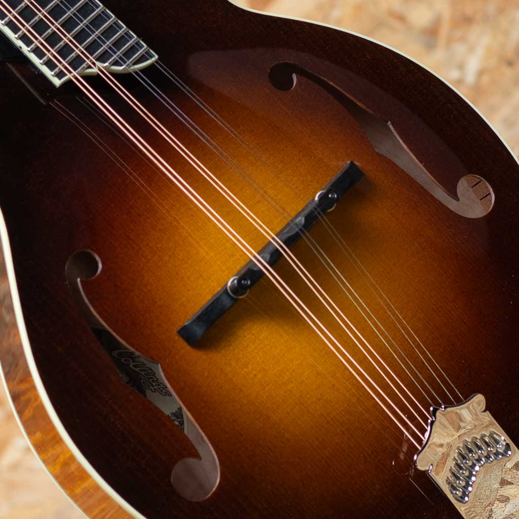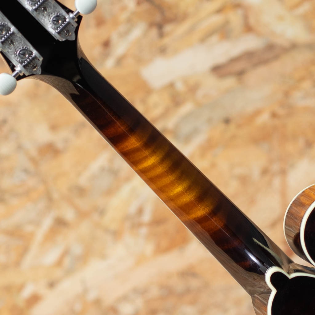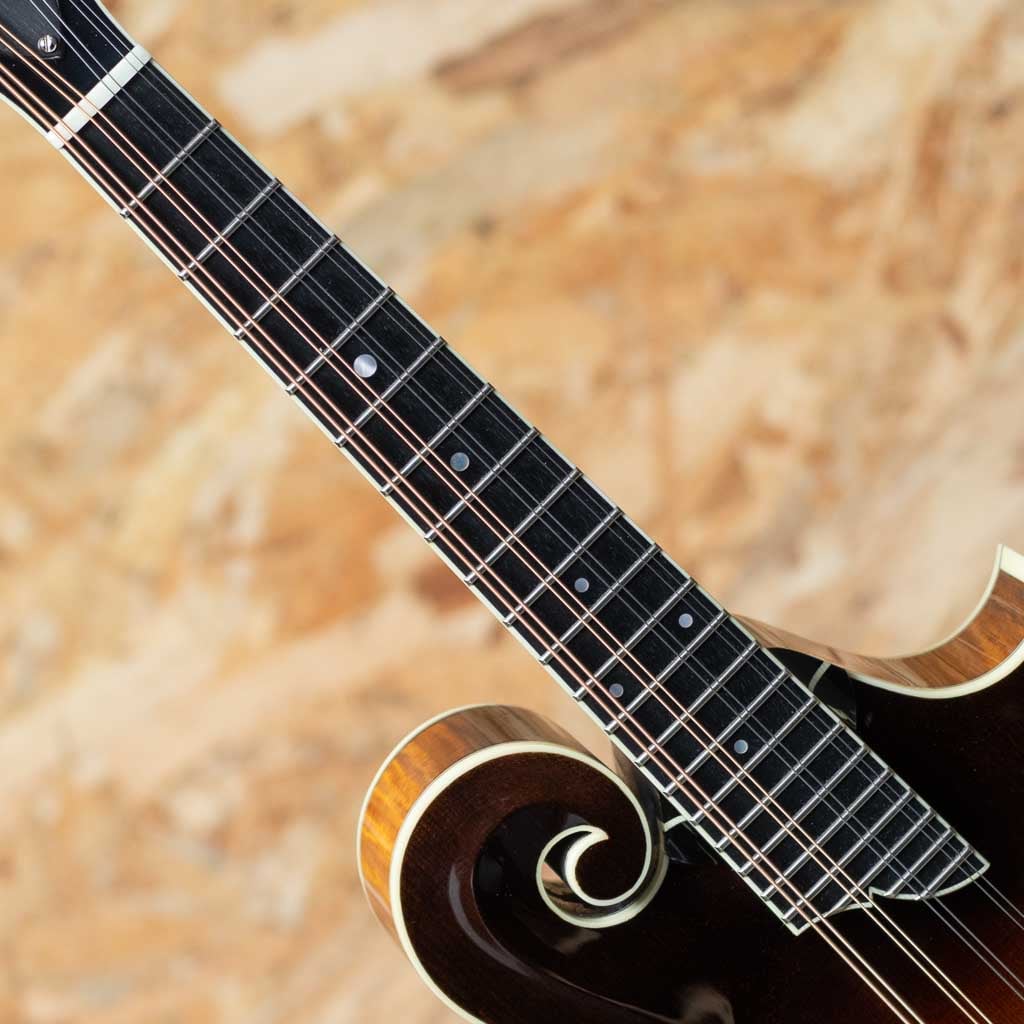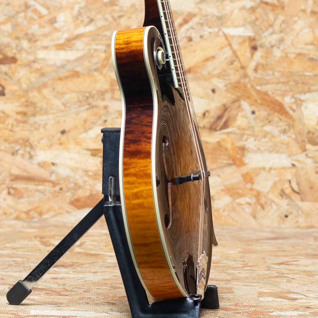 洗練された響きの中にも骨太でファットな感触をもつサウンド。明瞭かつ整然と立ち上がる一音一音はとても輪郭の整った響きをもち、ボリューム感も豊富、繊細なタッチにシビアに追従するエモーショナルな高い表現力をもちます。Gibson以外のハイエンドマンドリンをお探しの方に是非お試しいただきたい逸品です。オリジナルハードケース付属。