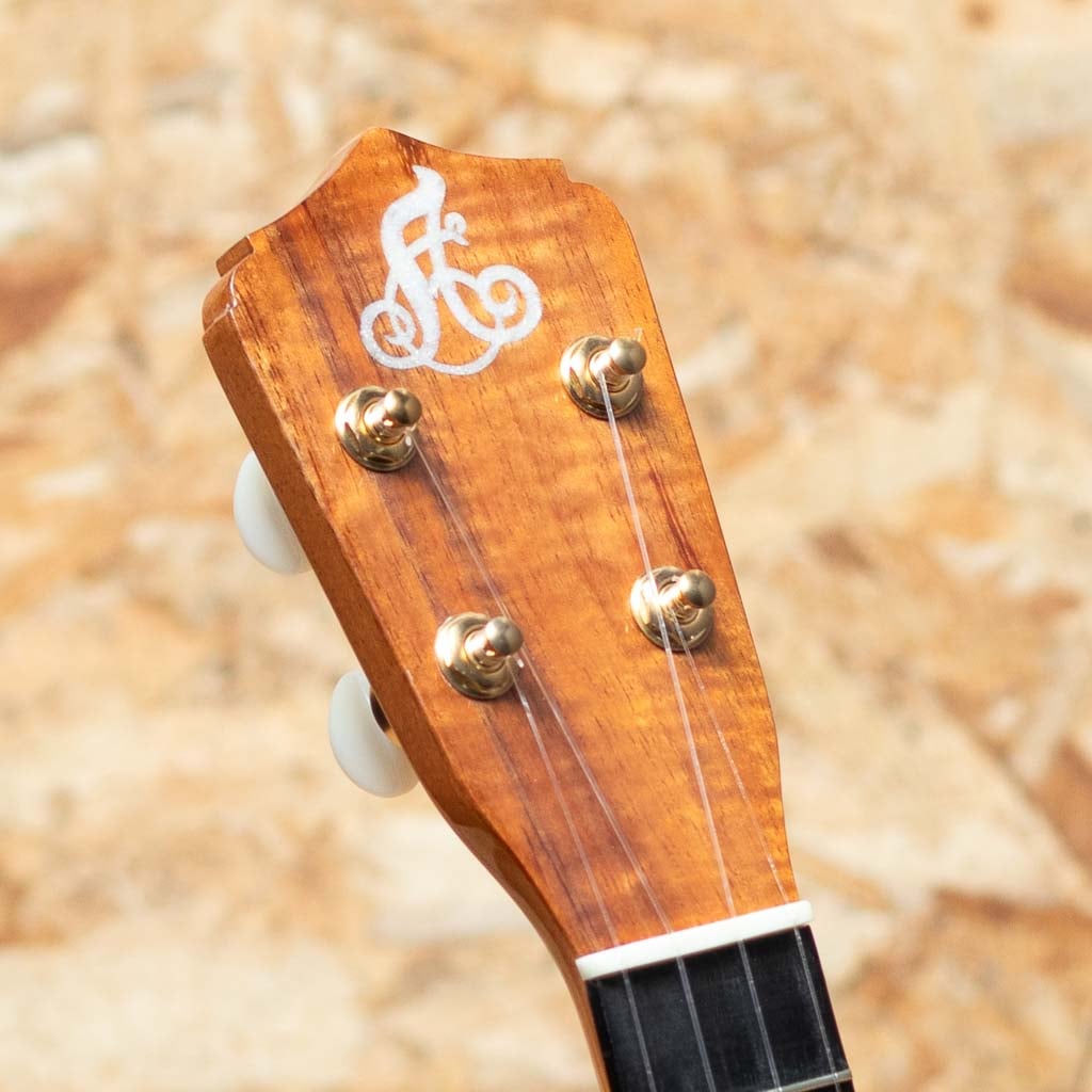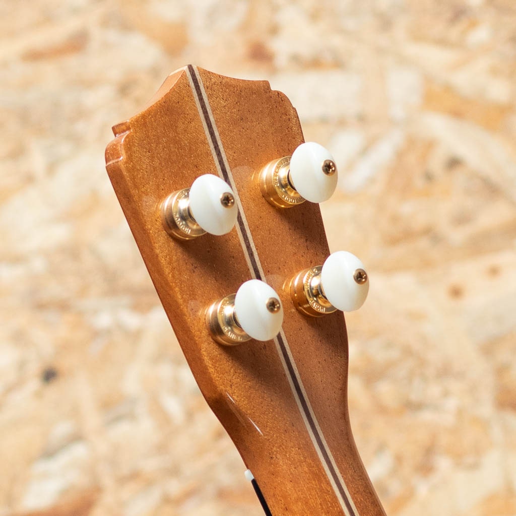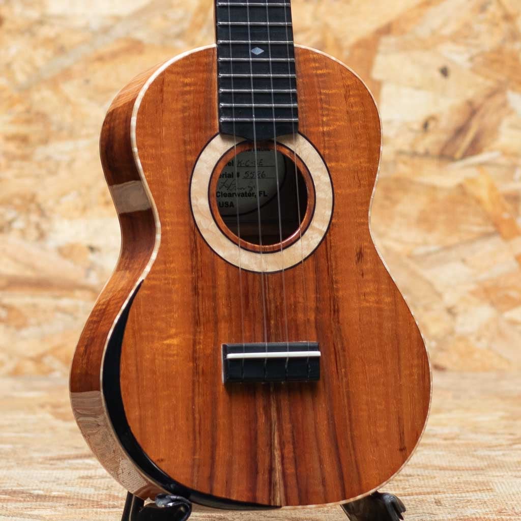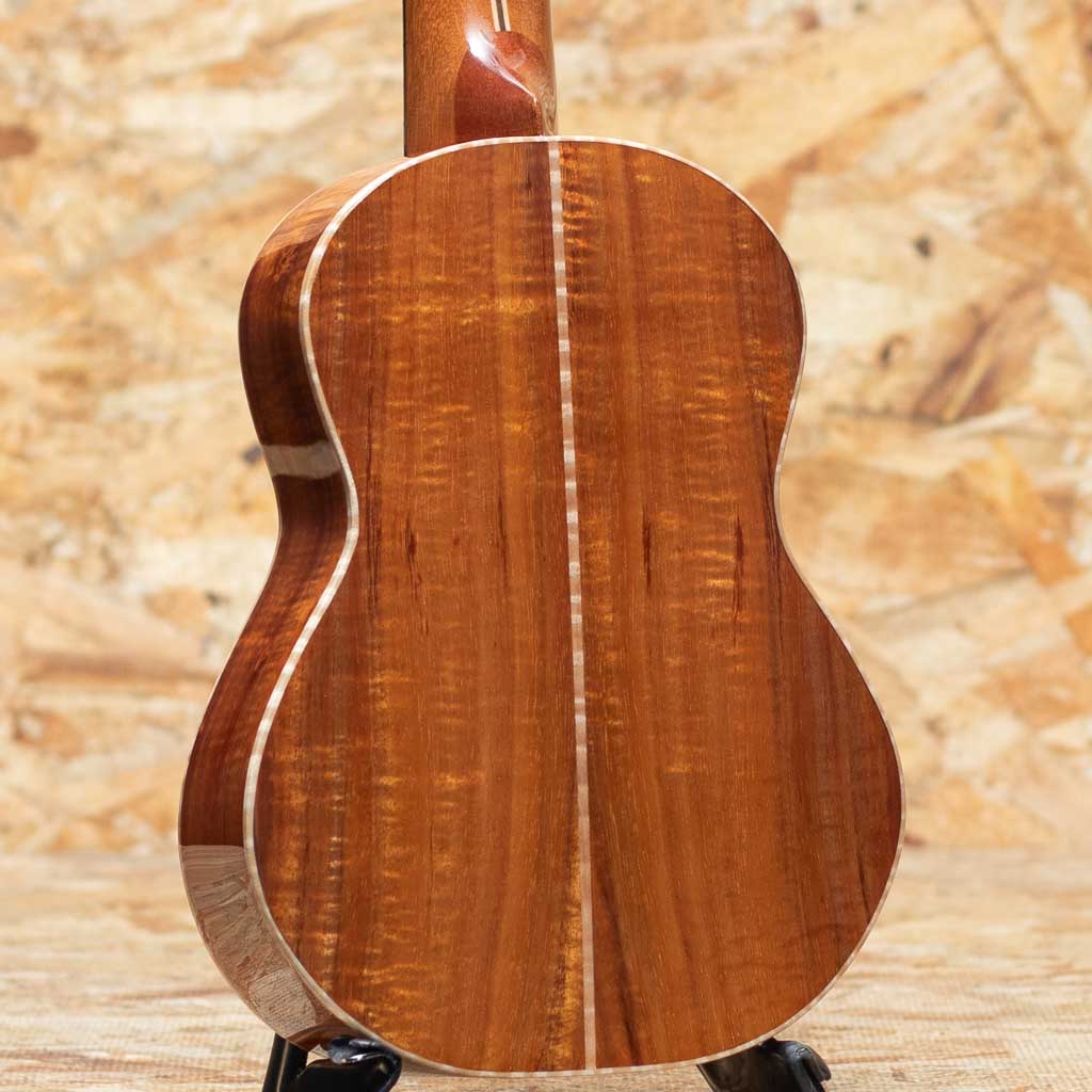 ロプリンジはアメリカ・フロリダ州にて、弦楽器職人”アーガスティノ・ロプリンジ”氏により生み出されるウクレレ。ロプリンジ氏は、マーティンやフェンダー等の弦楽器のデザインやコンサルティングを努め、多くの弦楽器職人を輩出。現在も材のこだわりと緻密な設計で名器を生み出しております。ハーブオオタサンなど、著名アーティスト達の愛器の内の1本としても知名度があります。現在は娘のドナ・ロプリンジと共に製作をされております。本器はハイグレードのハワイアンコア材を用いたカスタム仕様のコンサートモデル。マホガニーネック、エボニー指板&ブリッジ、ゴトーUPTペグ、ボディアームレスト加工。きれいなハワイアンコアとメイプルのロゼッタ・バインディングの落ち着いた高級感のあるルックスです。深みもあり、明るく抜けも良く、気持ちの良いサウンド。アームレスト加工でホールド時の負担を軽減し演奏性も良い1本です。近年、国内の流通も少ないロプリンジウクレレ。ハードケース付属です。