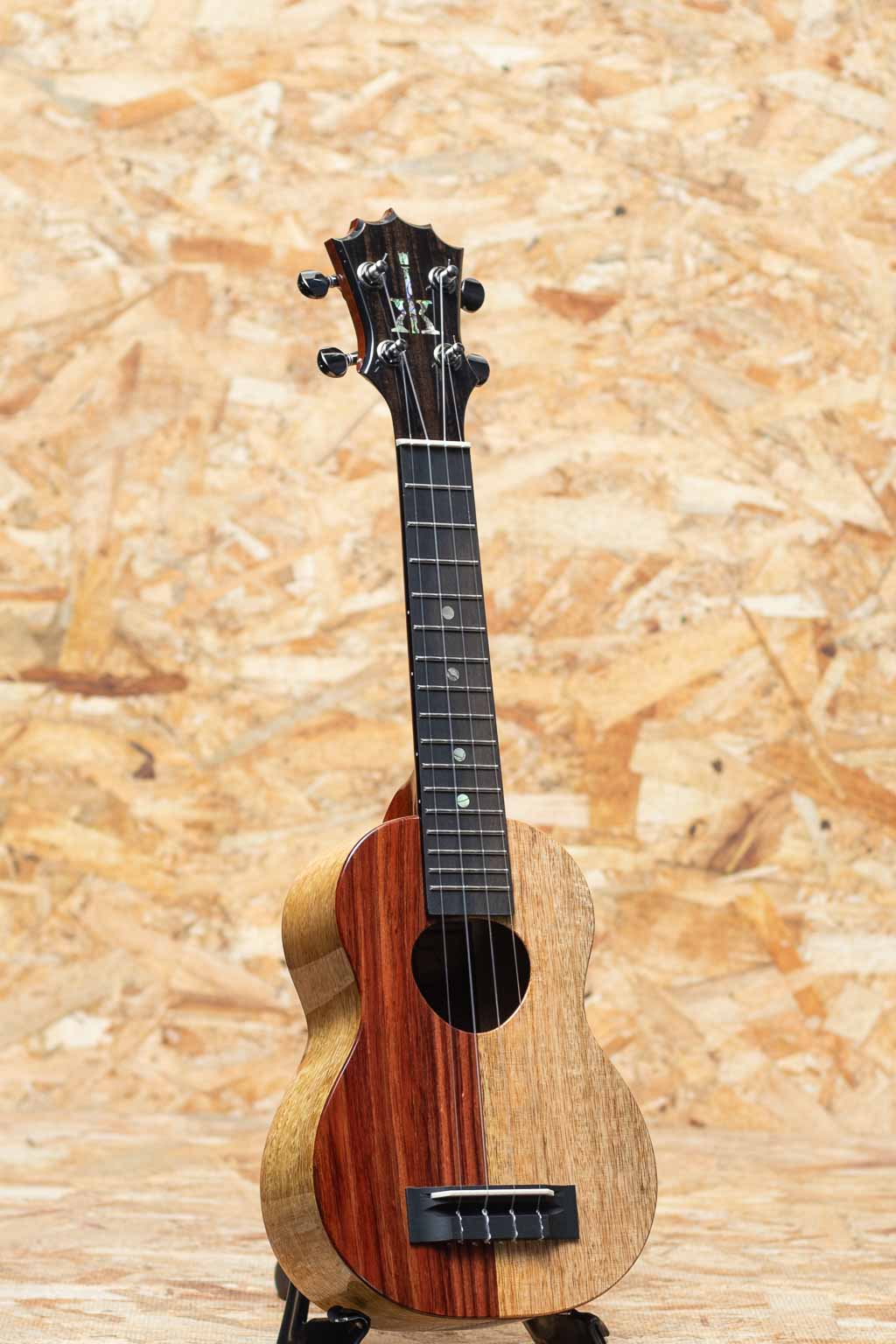 アルヴィン・オカミにより1995年に創設されたコアロハ・ウクレレ。現在は長男で社長のアランと、次男で副社長のポールを中心に、少数精鋭にて運営されております。今ではハワイを代表するウクレレメーカーの一つとなったコアロハ。モダンなルックスデザイン、優れた演奏性で、他のメーカーにはないハイファイでクリア、そしてなんと言っても大きな音量が特徴。本器はボディにハワイアンコア、マンゴーを半分ずつ用いたユニークなルックスが特徴の”ナウパカ・シリーズ”のソプラノモデル。名前はハワイに生息する花びらが片側半分しか咲かない花”Naupaka”に由来します。この花には伝説があり、火の神の嫉妬により引き裂かれた男女がそれぞれ別々の場所に咲くマウンテン・ナウパカ、ビーチ・ナウパカという花(それぞれ実際にハワイに生息します)になったが、片側しか花を咲かすことができず、それは現在も続いており、その2つのナウパカを合せると2人の魂に導かれ、恋人達はきっと結ばれると言われています。(伝説は他にも何種類かございます。)そんな神秘的な伝説を持ったナウパカをハワイアンコアとマンゴーで表現したデザイン性溢れるモデルです。ウクレレ全体でそれぞれの材の対比が本当にユニークに表れております。コアロハらしくクリアなサウンドですが、低域の広がりもありながら、中域・高域は華やかで明るく、ハワイアンコア材とマンゴー材の良いとこ取りの様な響きを持っております。新たに少し仕様変更があり、ヘッドの突板がエボニーに変わっています。映えるルックスのモデルです。耐久性抜群かつ軽量なセミライトケースが付属します。